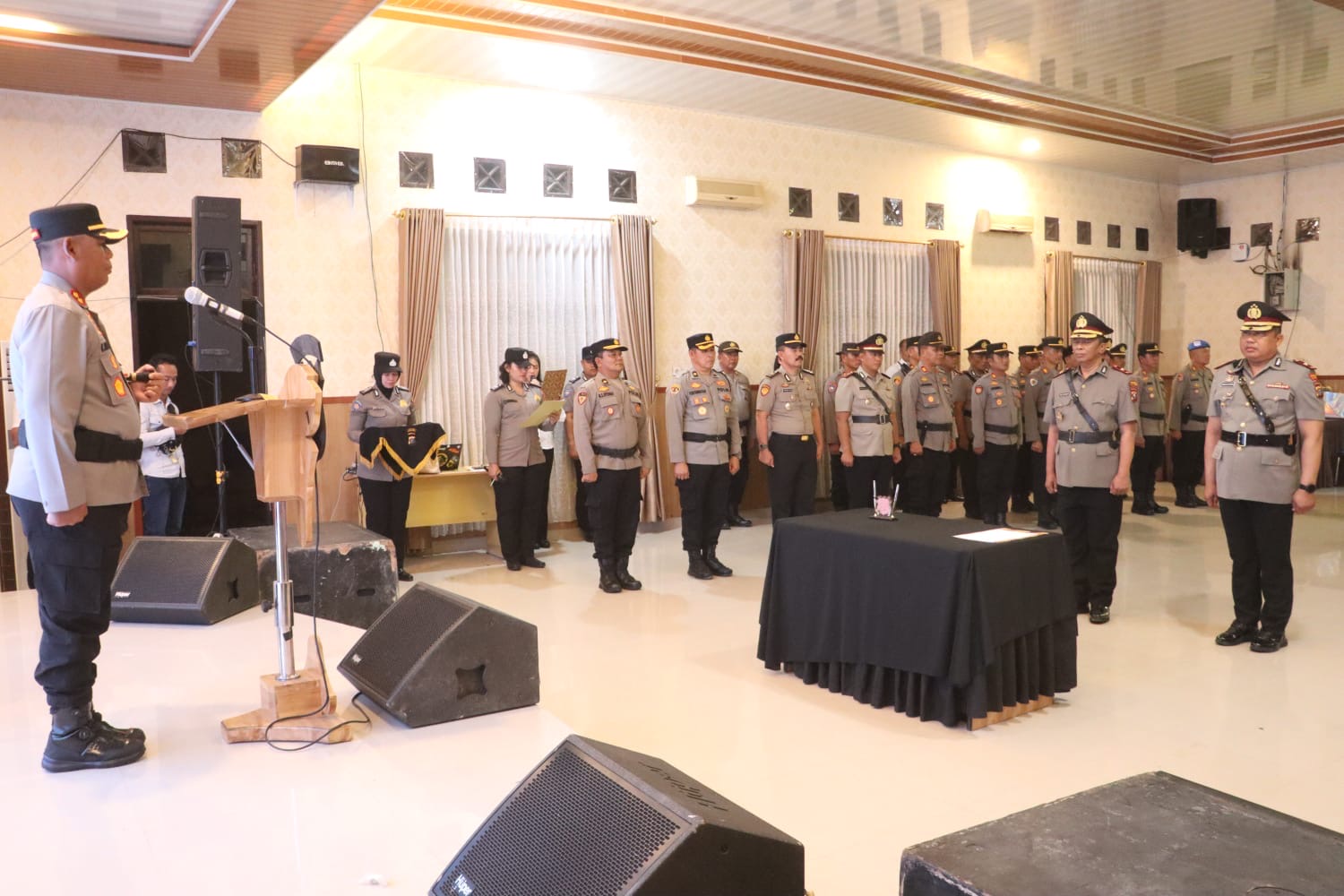 Pengambilan sumpah dipandu langsung oleh Kapolres. KOMPOL Imam Alriyuddin mengangkat tangan kanan, mengucapkan sumpah dengan suara yang mantap dan penuh keyakinan.