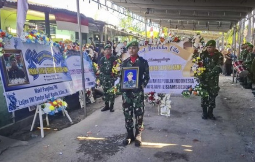 Setelah dua hari disemayamkan di rumah duka, jenazah Prada Lucky dimakamkan pada Sabtu (9/8) dengan upacara kemiliteran. Sebelum dilakukan upacara secara dinas kemiliteran, didahului dengan ibadah pemakaman yang dipimpin Pendeta Lenny Walunguru dari GMIT Batu Karang Kuanino. (CNN/Red)