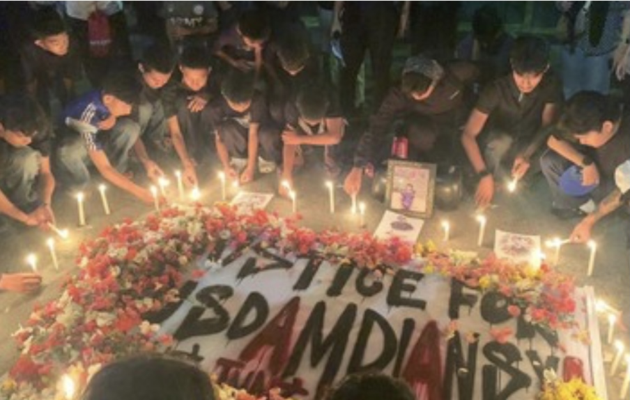 Setelah itu, puluhan mahasiswa menyalahkan lilin dan berdoa bersama serta menabur bunga sebagai bentuk aksi solidaritas atas kematian Rusmadiansyah.
