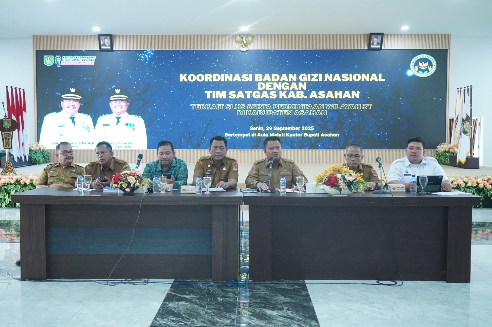 Pemerintah Kabupaten Asahan bersama Badan Gizi Nasional (BGN) Perwakilan Kabupaten Asahan dan Tim Satgas Kabupaten, Senin (29/9/2025) menggelar rapat koordinasi percepatan Program Makan Gizi Gratis (MBG) di Aula Melati Kantor Bupati Asahan. Program ini ditujukan untuk memperluas layanan makanan bergizi gratis dengan target 210.000 penerima manfaat. Hingga kini telah beroperasi 23 dapur gizi, ditambah 3 dapur dalam tahap pembangunan dan 8 dapur dalam persiapan. Pemerintah daerah menargetkan hingga akhir 2025 sedikitnya 40 dapur beroperasi penuh, termasuk di wilayah 3T yang memerlukan perhatian khusus.