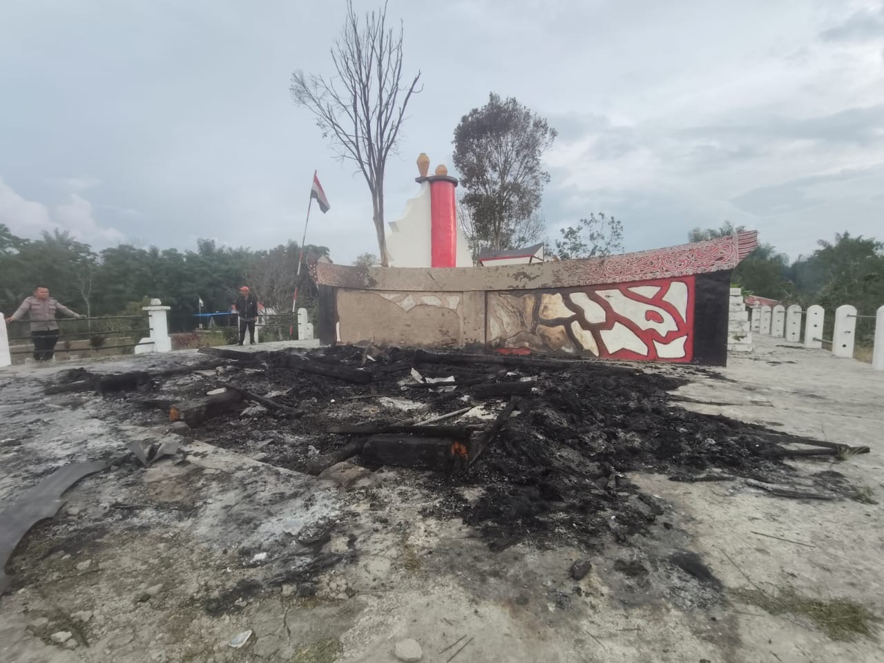 Balai Pasogit Datu Pejel yang terbuat dari kayu beratapkan ijuk berukuran 4×4 Meter di Desa Parsaoran Sibisa Kecamatan Ajibata Kabupaten Toba Provinsi Sumatera Utara terbakar pada Rabu (24/12/2025) sekira pukul 17.00 Wib sore