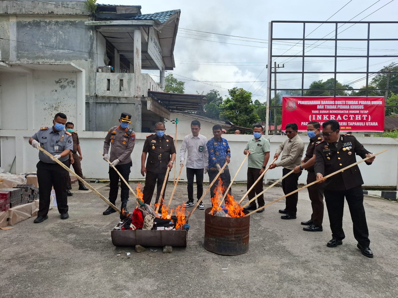 Kepala Kejaksaan Negeri Tapanuli Utara, Donny K .Ritonga menyebut pemusnahan barang bukti merupakan salah satu tugas Kejaksaan Republik Indonesia. Barang bukti yang dimusnahkan ini sudah berkekuatan hukum tetap (Inkracht) berdasarkan keputusan pengadilan.