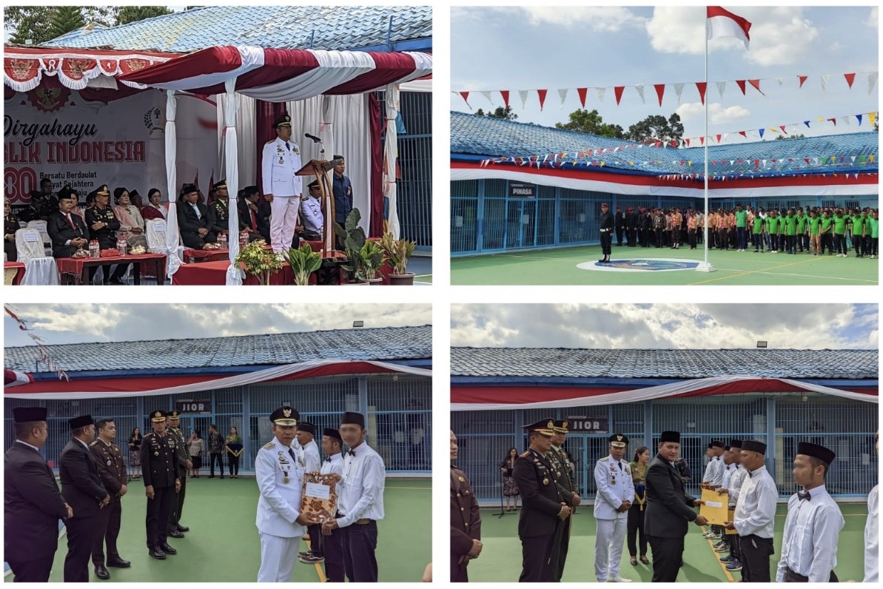 Rumah Tahanan Negara (Rutan) Kelas IIB Tarutung selenggarakan upacara penyerahan Remisi Umum dan Remisi Dasawarsa bagi Narapidana dan Pengurangan Masa Pidana Umum dan Dasawarsa bagi Anak Binaan dalam rangka Peringatan Hari Ulang Tahun Kemerdekaan Republik Indonesia ke-80 Tahun 2025 yang dipusatkan di Lapas Kelas IIB Siborongborong dan dipimpin oleh Inspektur Upacara, Bupati Tapanuli Utara Dr. Jonius Taripar Parsaoran Hutabarat, S.Si., M.Si. Minggu (17/08/2025).