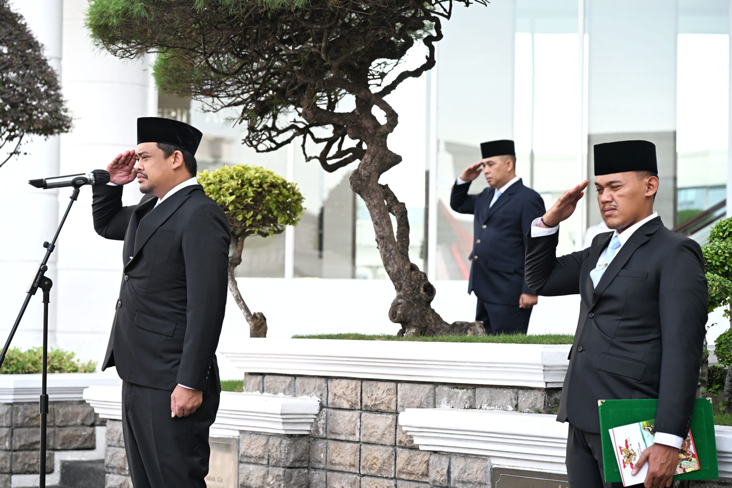 Gubernur Sumatera Utara (Sumut) Bobby Nasution memimpin Upacara Bendera dalam rangka Peringatan Hari Lahir (Harla) Pancasila Provinsi Sumut tahun 2025. Kegiatan tersebut berlangsung di Lapangan Apel, Kantor Gubernur Sumut, Jalan Diponegoro Nomor 30 Medan, Senin (2/6/2025).