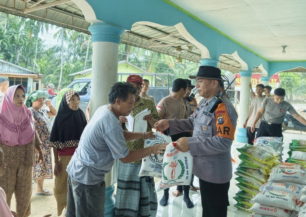 Tak hanya itu, kepedulian juga diwujudkan melalui penyaluran bantuan sembako berupa beras sebanyak 290 sak kepada masyarakat Desa Aek Ngadol. Bantuan tersebut disalurkan secara tertib dan aman, dengan pengawasan langsung personel Brimob, sehingga tepat sasaran dan dapat segera dimanfaatkan oleh warga.