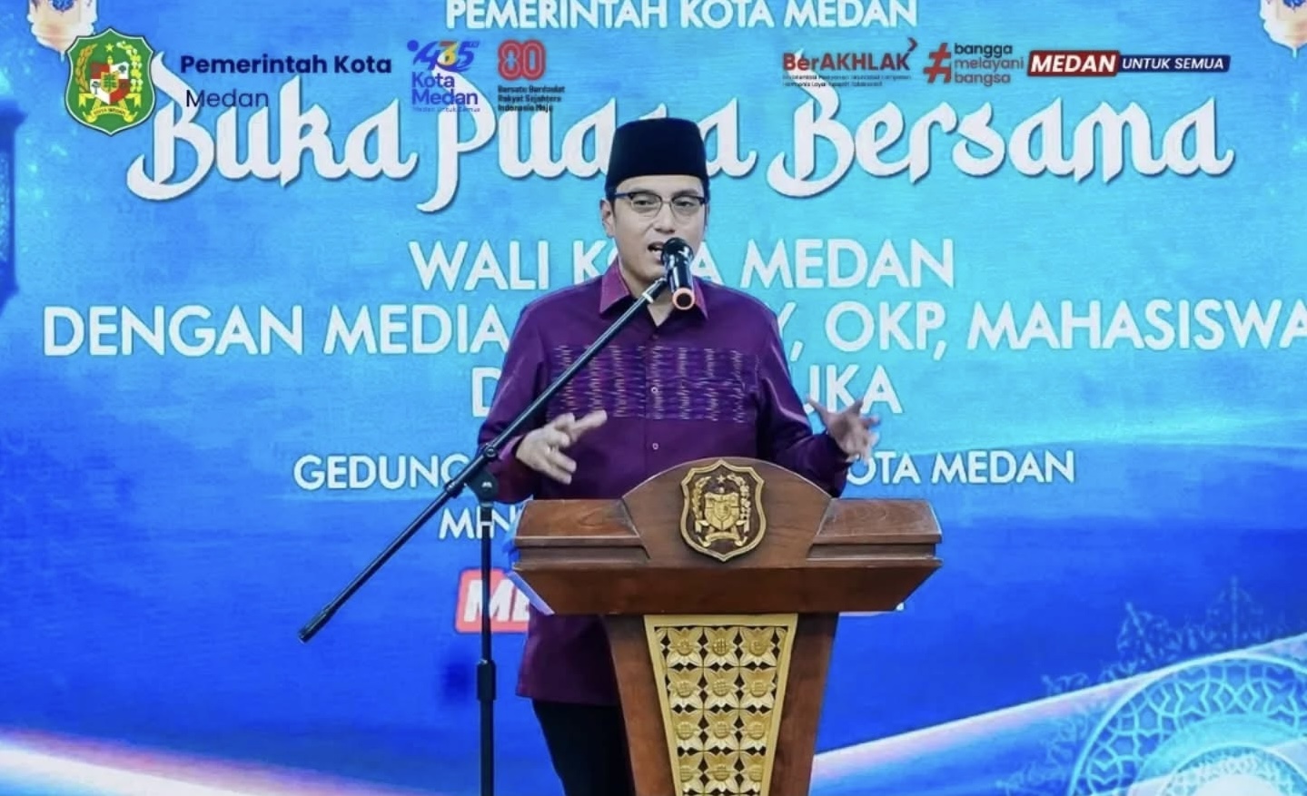 Ajakan tersebut disampaikannya saat berbuka puasa bersama insan media, organisasi masyarakat, OKP, mahasiswa, dan Pramuka di Gedung PKK Medan, Minggu (15/3/2026).