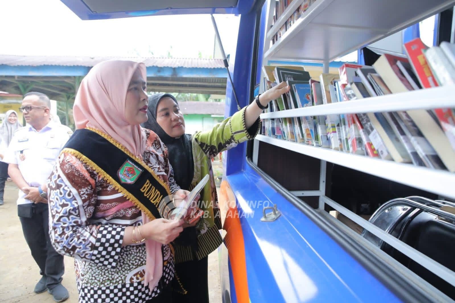 Bunda Literasi Kabupaten Asahan yang juga merupakan Ibu Bupati Asahan melakukan peninjauan langsung terhadap layanan perpustakaan keliling di Kecamatan Aek Ledong. Kegiatan ini bertujuan untuk melihat secara langsung pemanfaatan fasilitas literasi oleh masyarakat, khususnya para pelajar.