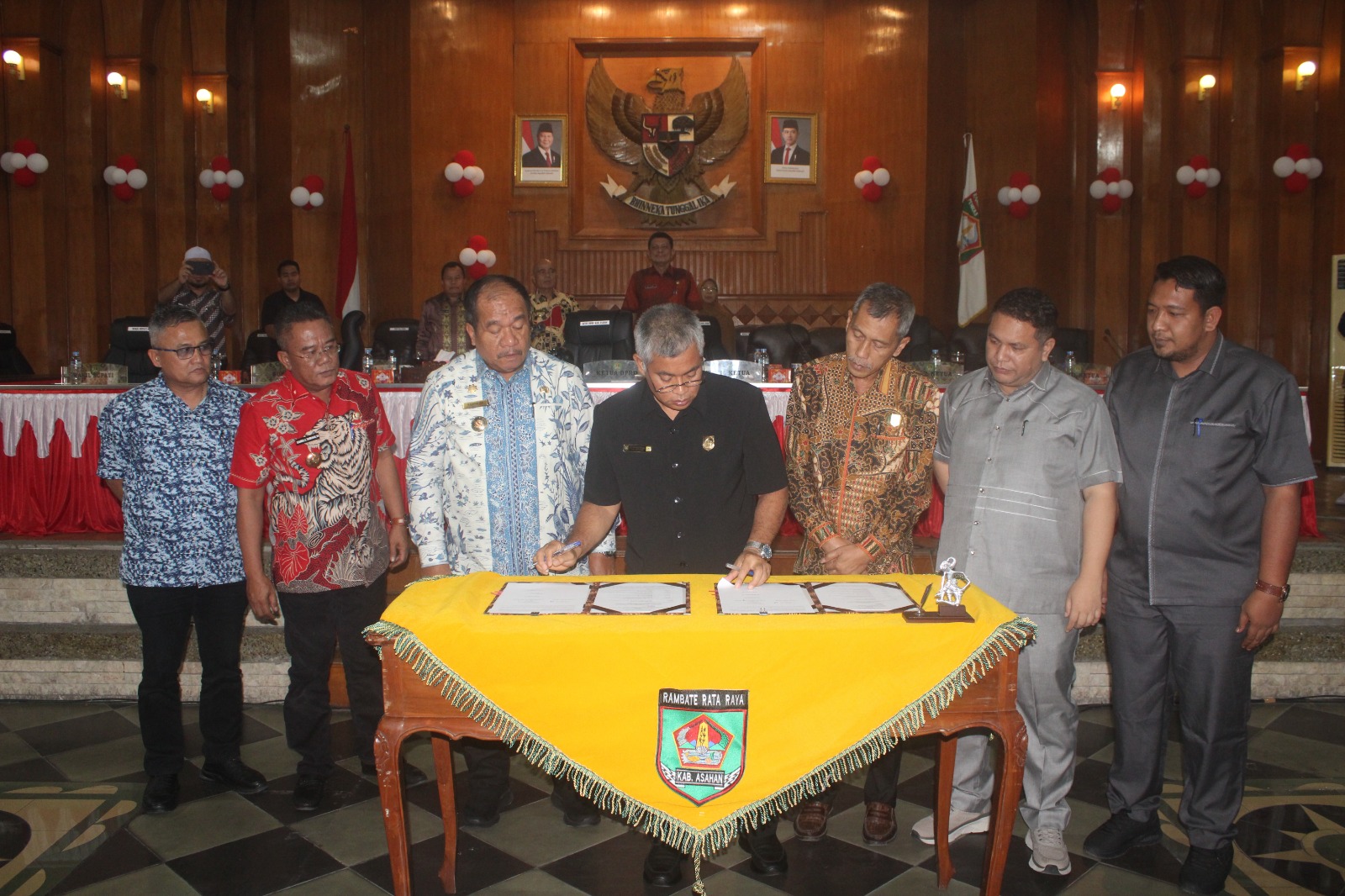 Bupati Asahan, Taufik Zainal Abidin, bersama dengan Ketua DPRD Asahan, Efi Irwansyah Pane, dan Wakil Ketua DPRD Asahan melakukan penandatanganan Nota Kesepakatan Rancangan Perubahan Kebijakan Umum Anggaran dan Rancangan Perubahan Prioritas Plafon Anggaran Sementara Tahun Anggaran 2025. Jumat, (29/08/2025). Kegiatan ini dihadiri oleh Sekretaris Daerah, Staf Ahli, Asisten, Kepala OPD, dan Kepala Bagian Setdakab, Anggota DPRD Asahan, dan tamu undangan lainnya.