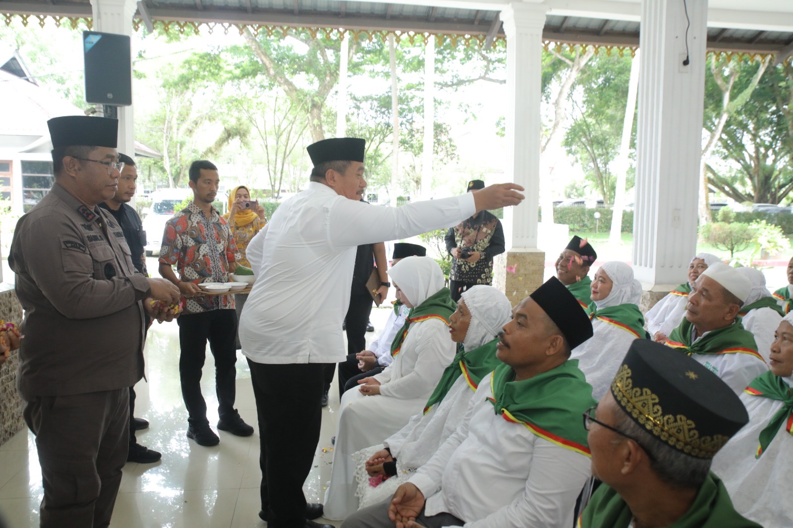 Tidak lupa Bupati juga meminta kepada pembimbing Haji dan petugas kesehatan untuk terus membimbing dan memantau kesehatan para jemaah, agar para jemaah dapat menjalankan Ibadah Haji dengan sebaik-baiknya. “Kami juga mendoakan bapak ibu, diberikan kemudahan dalam menjalankan serangkaian Ibadah Haji nantinya. Saya minta berikan pelayanan terbaik kepada tamu Allah ini”. Ungkap Bupati.