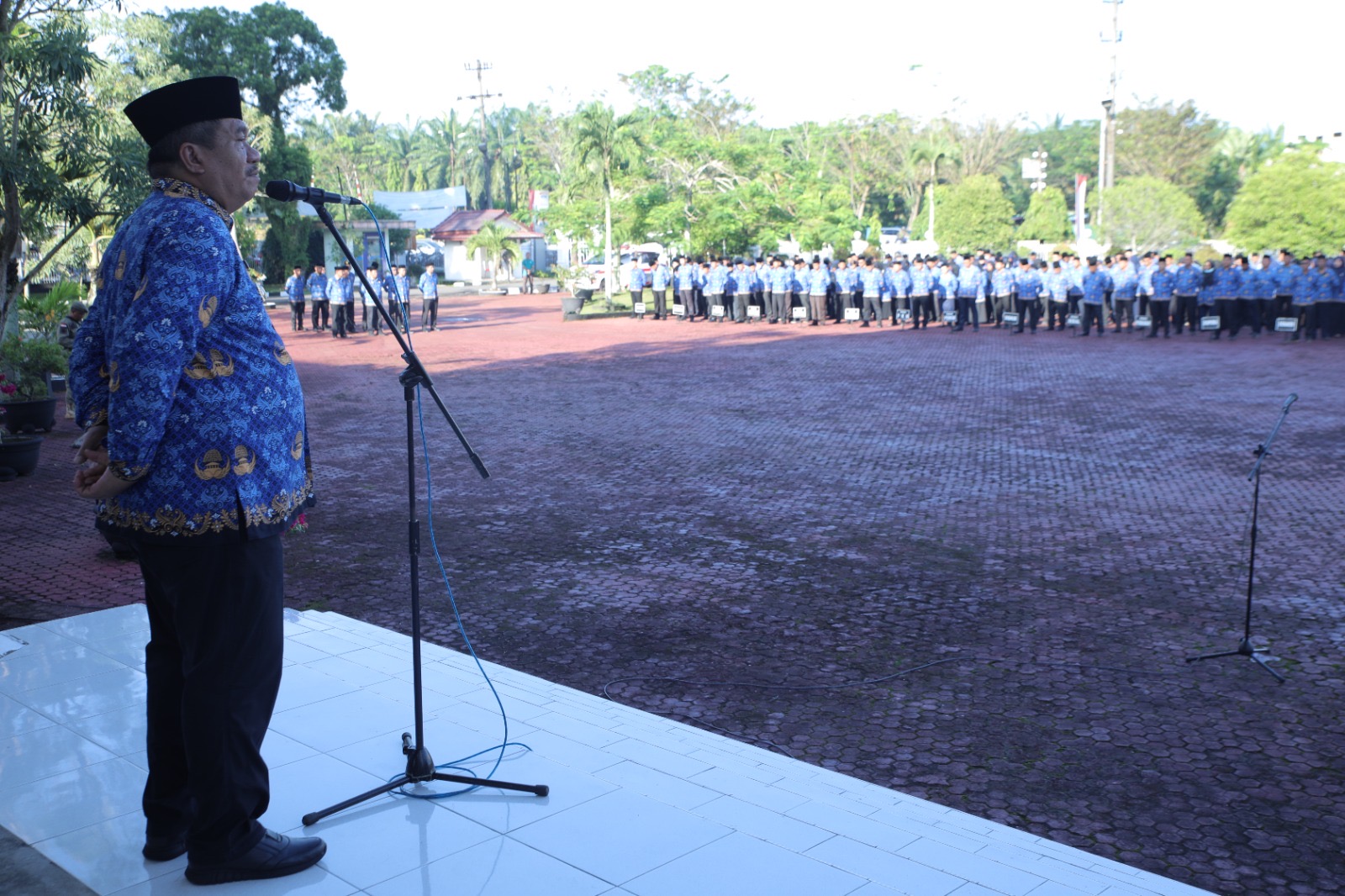 Bupati Asahan, Taufik Zainal Abidin Siregar, S.Sos., M.Si., memimpin Upacara Hari Kesadaran Nasional bulan April 2025 di Halaman Kantor Bupati Asahan, Kamis (17/04/2025). Terlihat Para Asisten, Staf Ahli Bupati, OPD dan ASN di Lingkungan Pemerintah Kabupaten Asahan mengikuti apel tersebut.