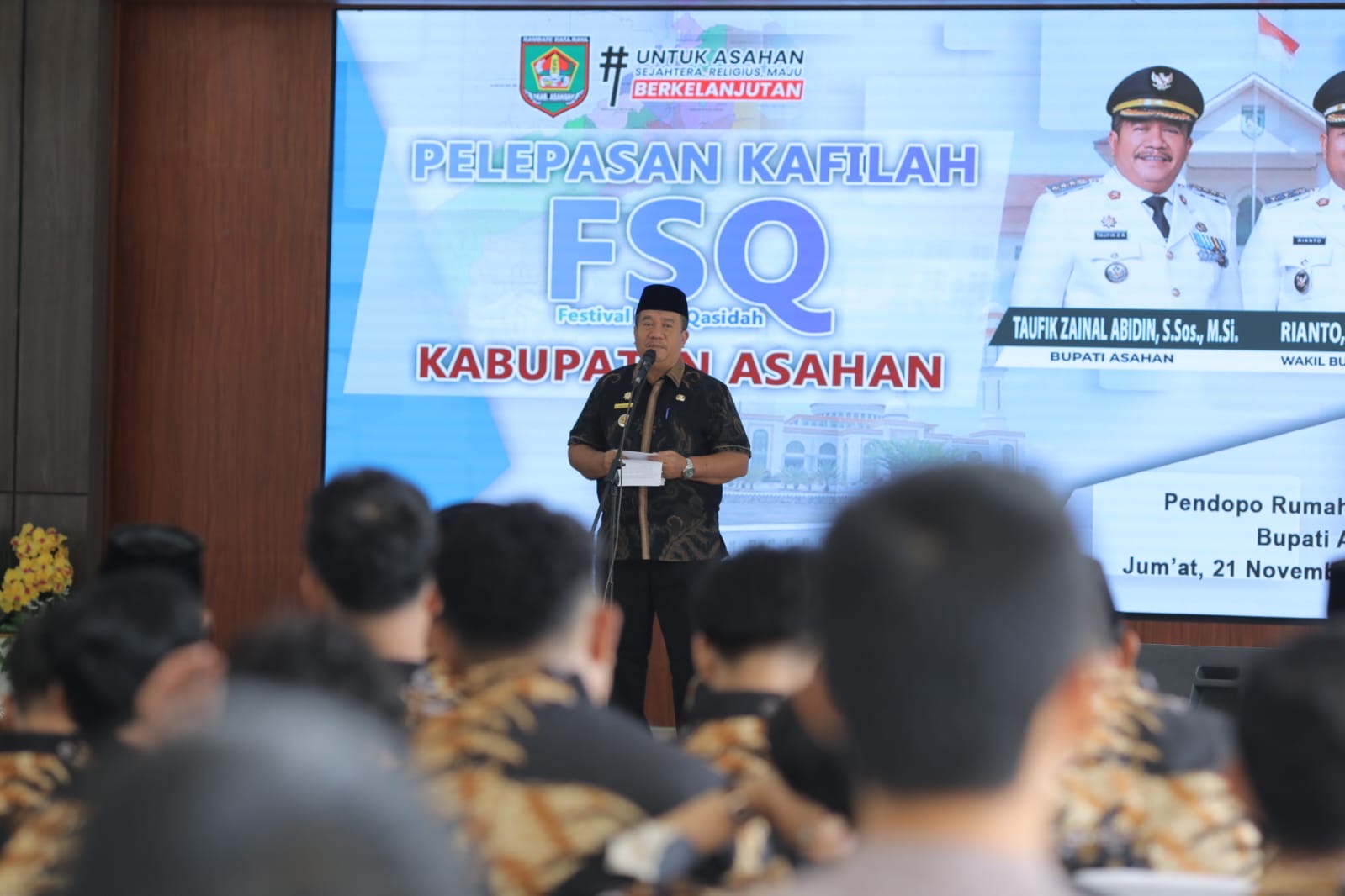 Bupati Asahan, Taufik Zainal Abidin S.Sos, M.Si, secara resmi melepas kontingen Festival Seni Qasidah (FSQ) Kabupaten Asahan untuk mengikuti ajang tingkat Provinsi Sumatera Utara. Acara pelepasan digelar di Aula Pendopo Rumah Dinas Bupati Asahan Jumat (21/11/2025).