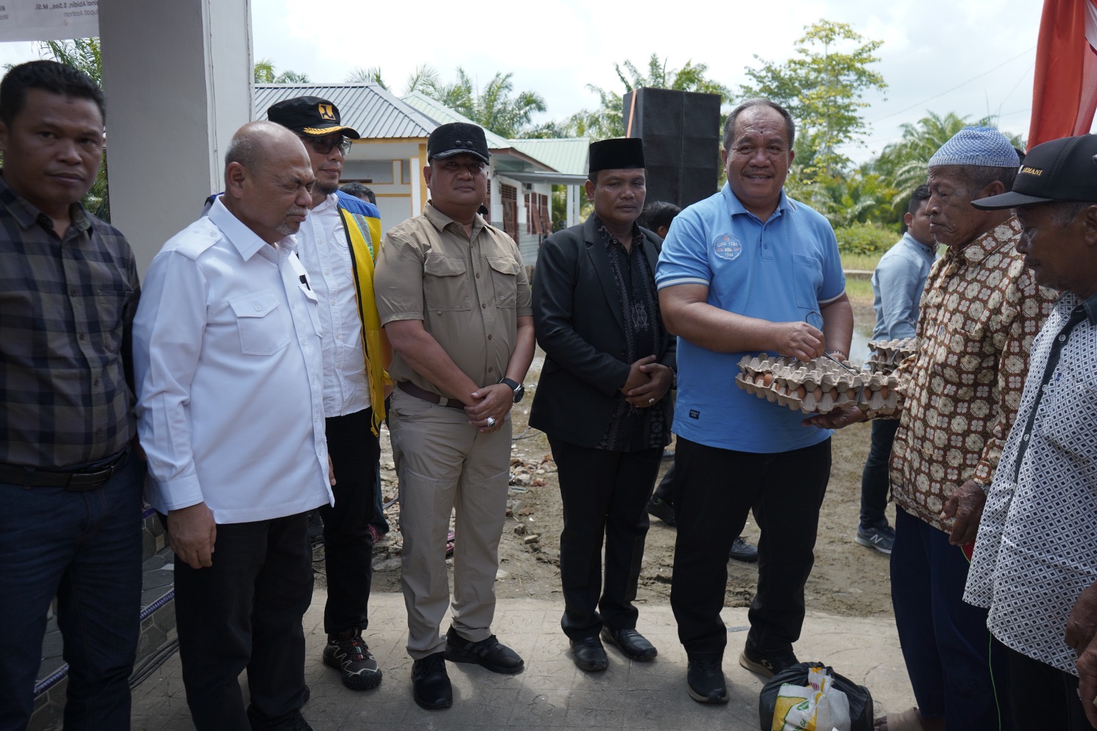 Penyerahan sembako dilakukan secara simbolis kepada 10 masyarakat yang terdampak banjir, kemudian nantinya akan di lanjutkan oleh pemerintah Kecamatan dan Desa untuk menyalurkan bantuan tersebut. Jenis bantuan yang diberikan berupa beras 10 kg sebanyak 550 kg, mie instan sebanyak 7050 Kotak, minyak goreng sebanyak 350 liter, Ikan kaleng Sarden sebanyak 300 kaleng, gula pasir sebanyak 50 kg, telur ayam sebanyak 1500 butir, seng sebanyak 100 lembar.
