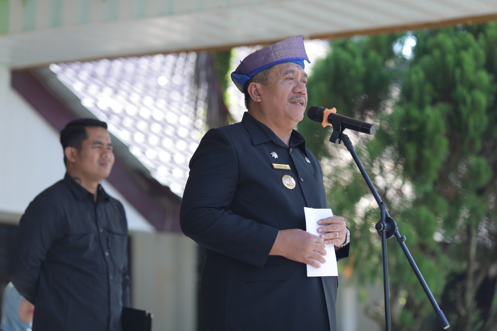 Menggunakan Tanjak Melayu Bupati Asahan, Taufik Zainal Abidin, S.Sos., M.Si pimpin peringatan Hari Pendidikan Nasional (Hardiknas) di Kabupaten Asahan yang bertempat di halaman Sekolah SMP Negeri 2 Kisaran pada Jumat, 02/05/2025.