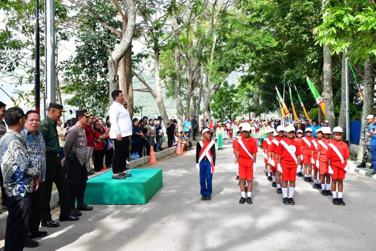 Bupati Samosir Vandiko Timotius Gultom, ST melepas lomba gerak jalan dalam rangka memeriahkan HUT ke-80 RI Tahun 2025. Pelepasan dilakukan di depan Rumah Dinas Bupati Samosir, Kamis (14/8/2025).