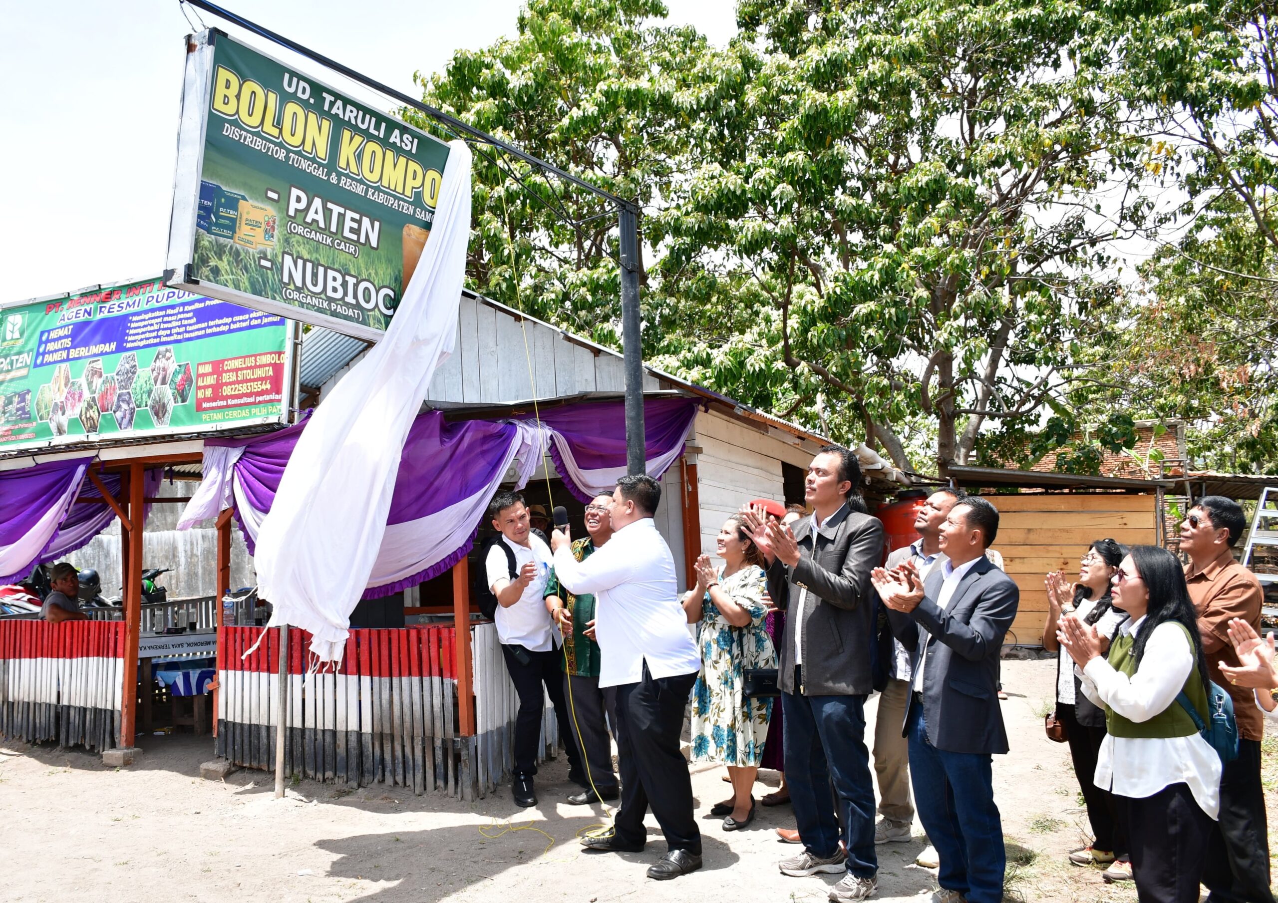 Bupati Samosir secara resmi membuka selubung sebagai tanda peresmian Gudang Bolon Kompos, UD. Taruli Asi di Desa Sitolu Huta Kecamatan Pangururan, Rabu (27/08/2025). UD. Taruli Asi merupakan distributor tunggal pupuk kompos PT. Renner Inti Internasional (Agen Resmi pupuk Paten).