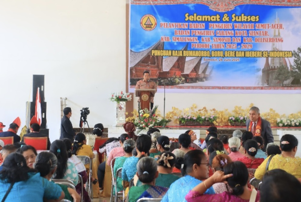 Bupati Samosir diwakili Asisten II Hotraja Sitanggang, ST, MM menyampaikan selamat dan sukses kepada Badan Pengurus Wilayah Sumut – Aceh, Badan Pengurus Cabang Kabupaten Samosir, Simalungun, Deli Serdang dan Kota Pematang Siantar punguan Raja Rumahorbo Boru, Bere, Ibebere se Indonesia Periode 2025-2030, yang baru dilantik pada Sabtu (28/6) di Graha Willem, Desa Garoga Kecamatan Simanindo.