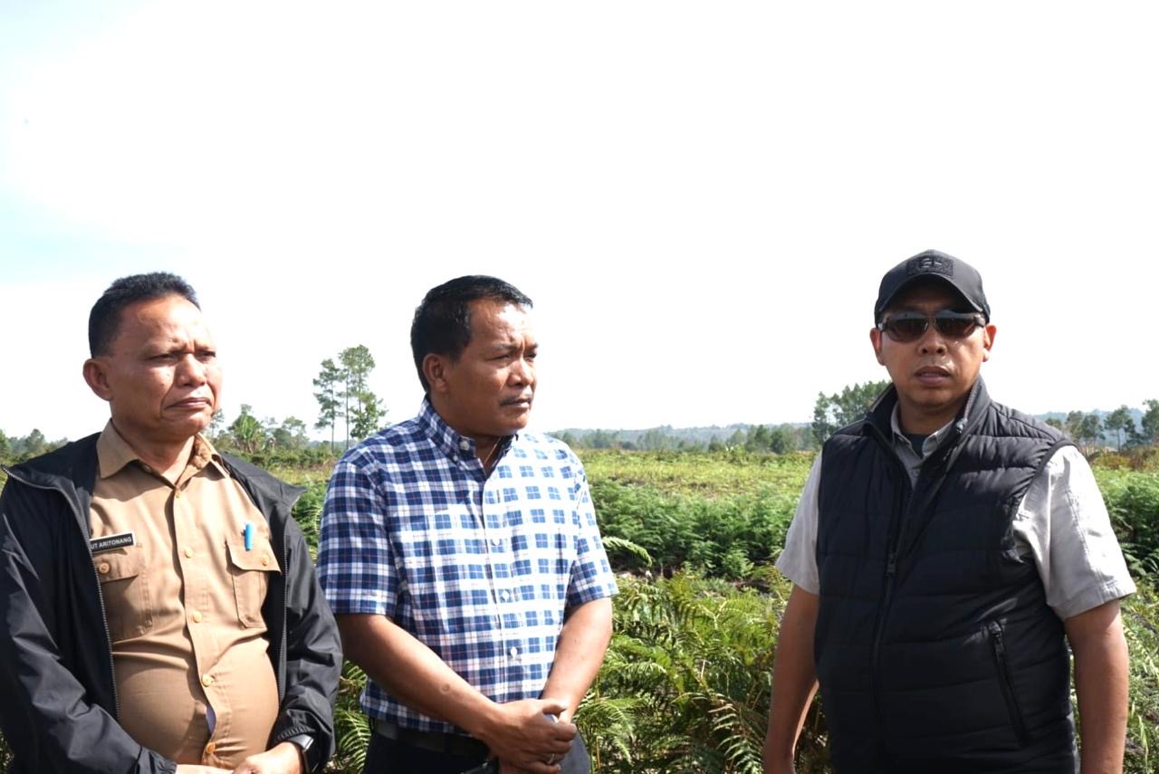 Bupati Tapanuli Utara, Dr. Jonius Taripar Parsaoran Hutabarat, S.Si, M.Si, didampingi Asisten Administrasi Umum Binhot Aritonang, meninjau lokasi rencana pembangunan Rumah Sakit dan Pangkalan TNI AU Lanud Soewondo di Desa Silando dan Desa Parik Sabungan, Silangit, Selasa (05/8/2025).