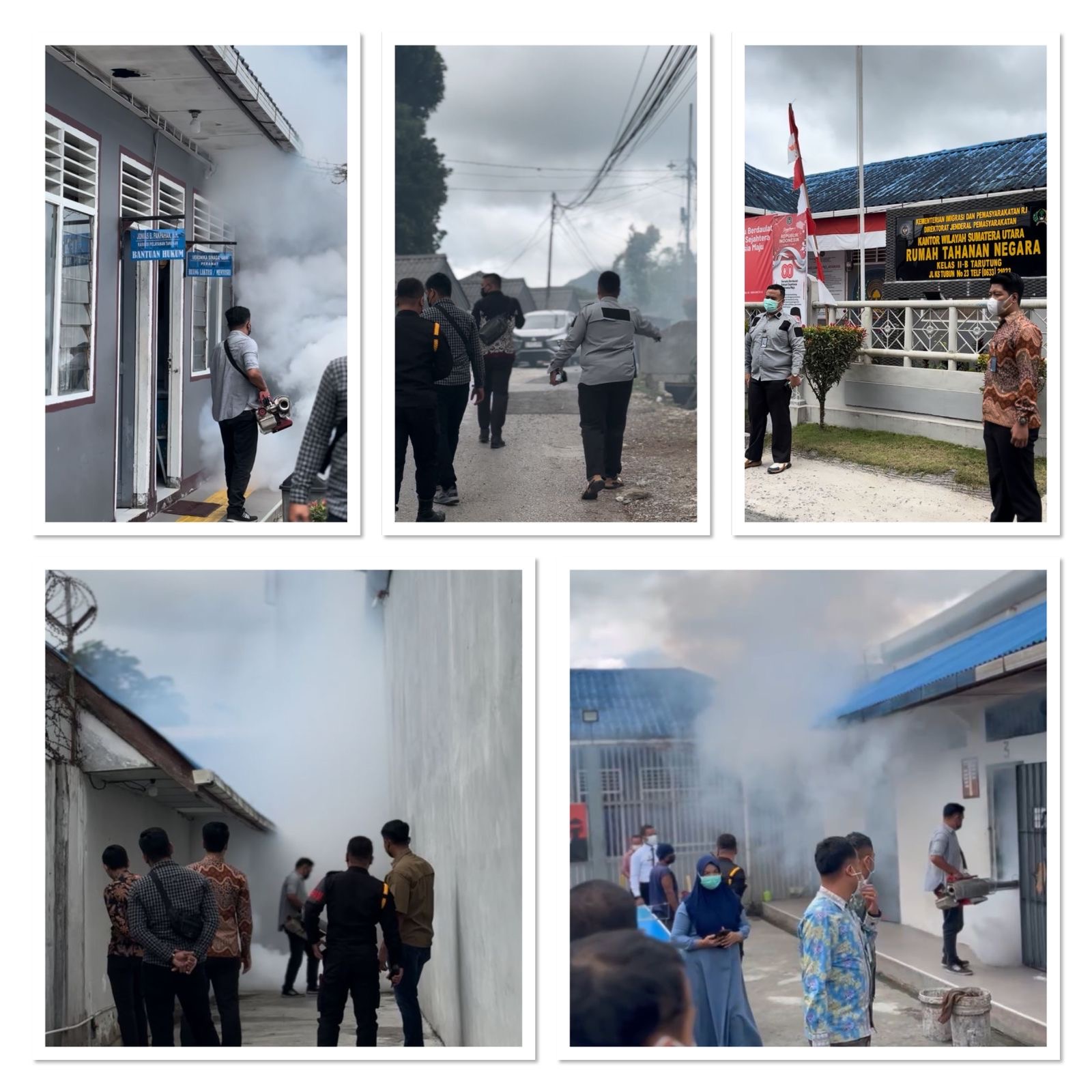 Dalam upaya menjaga kebersihan lingkungan serta mencegah penyebaran penyakit yang disebabkan oleh nyamuk, Rumah Tahanan Negara (Rutan) Kelas IIB Tarutung bekerjasama dengan Puskesmas Hutabaginda melaksanakan kegiatan fogging di area blok hunian dan lingkungan sekitar Rutan, Jumat (29/8).