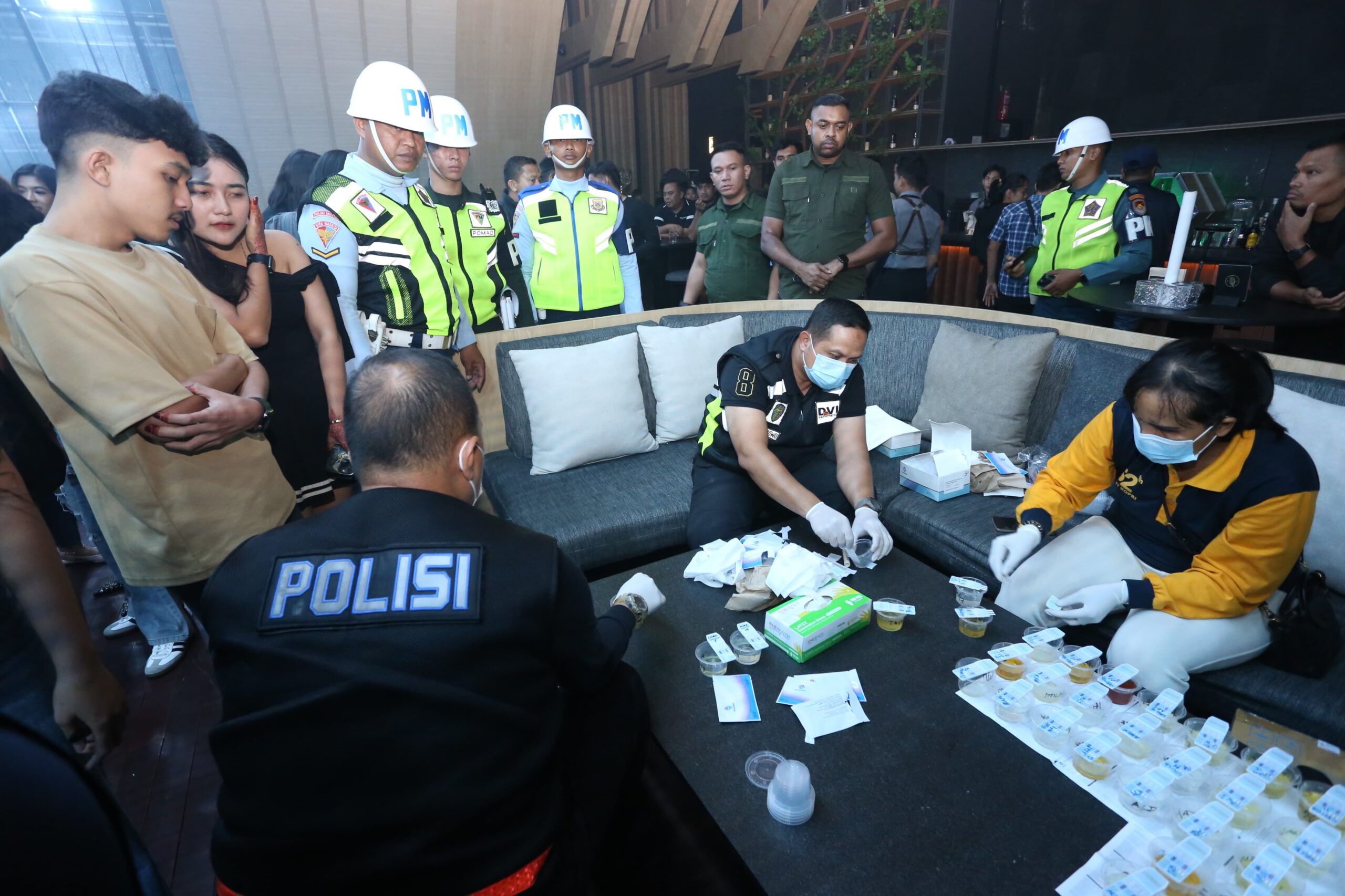 Razia dimulai sekitar pukul 00.00 WIB dengan pemeriksaan terhadap pengunjung, pegawai, dan area hiburan malam. Petugas juga melakukan tes urine terhadap sejumlah pengunjung yang dicurigai. Dari hasil pemeriksaan tersebut, satu orang pengunjung perempuan bernama Tasya dinyatakan positif narkoba, sedangkan tidak ditemukan barang bukti narkotika lainnya (nihil).