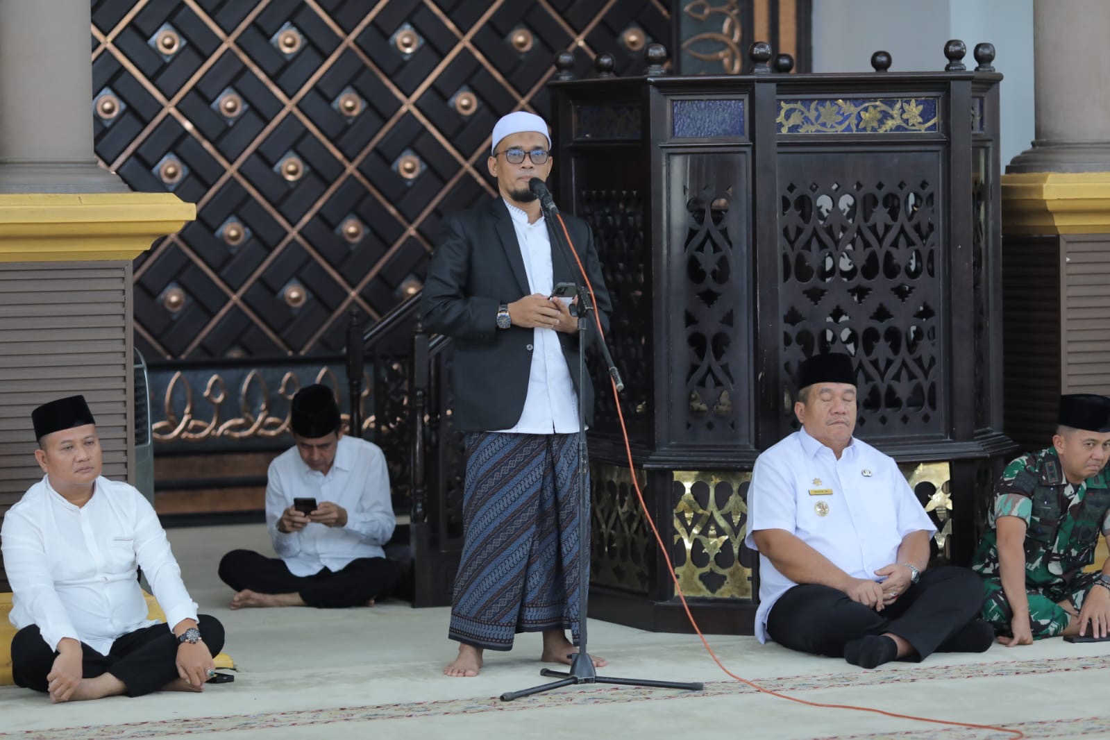 Kemudian dilanjutkan dengan Tausiyah Agama yang disampaikan oleh Al Ustadz Dr. H. Syahrul Nasution, MA Mengajak seluruh masyarakat untuk bersama-sama membangun Kabupaten Asahan agar semakin baik di masa mendatang