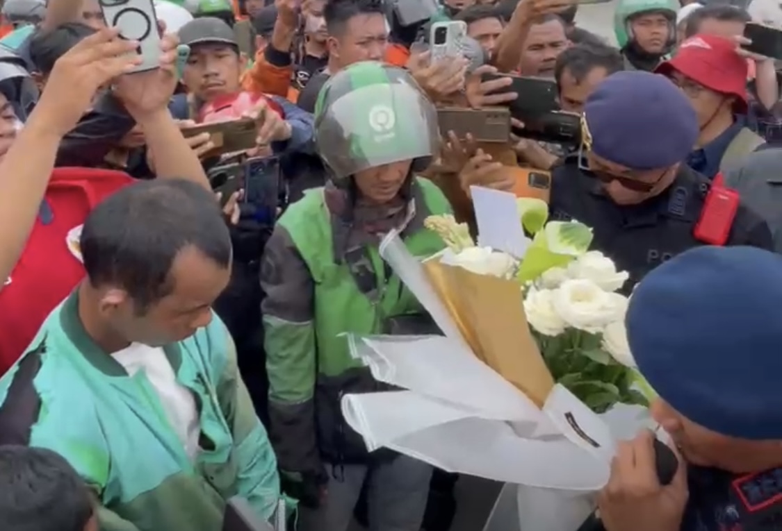 “Hari ini kita tidak hanya berdiri sebagai polisi atau pengemudi, tetapi sebagai saudara sebangsa. Doa ini adalah wujud kebersamaan kita. Semoga almarhum Affan Kurniawan mendapat tempat terbaik, dan semoga kita semua terus diberi kekuatan dalam menjaga persaudaraan serta persatuan bangsa,” ucap Dansat Brimob penuh haru.