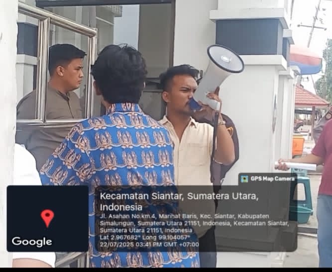 Ahmad Fauzi selaku Ketua AMB bersama timnya melakukan aksi unjuk rasa damai di depan gedung Kejaksaan Negeri Simalungun (Kejari) pada hari Selasa (22/7/2025) Siang, menuntut agar pihak Kejari cepat memproses laporannya terkait dugaan korupsi di dinas Pariwisata Simalungun.