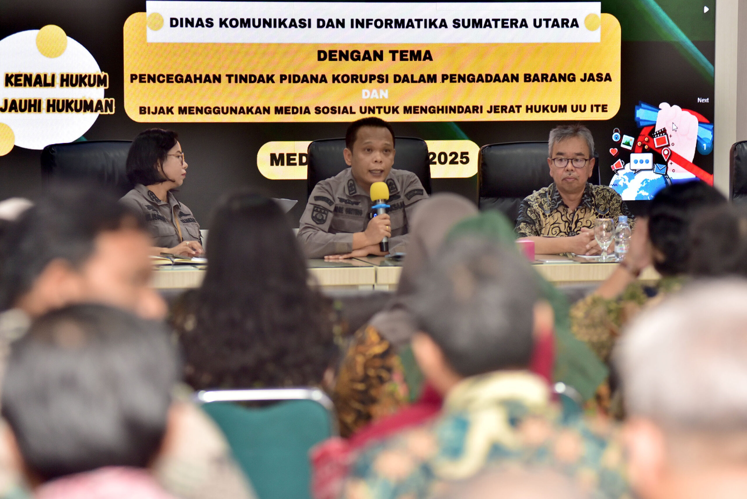 Dinas Komunikasi dan Informatika (Kominfo) Sumatera Utara (Sumut) mengapresiasi kegiatan penerangan hukum yang diselenggarakan oleh Kejaksaan Tinggi (Kejati) Sumut. Kegiatan tersebut berlangsung di Kantor Dinas Kominfo Sumut, Jalan HM Said, Medan, Kamis (26/6/2025).