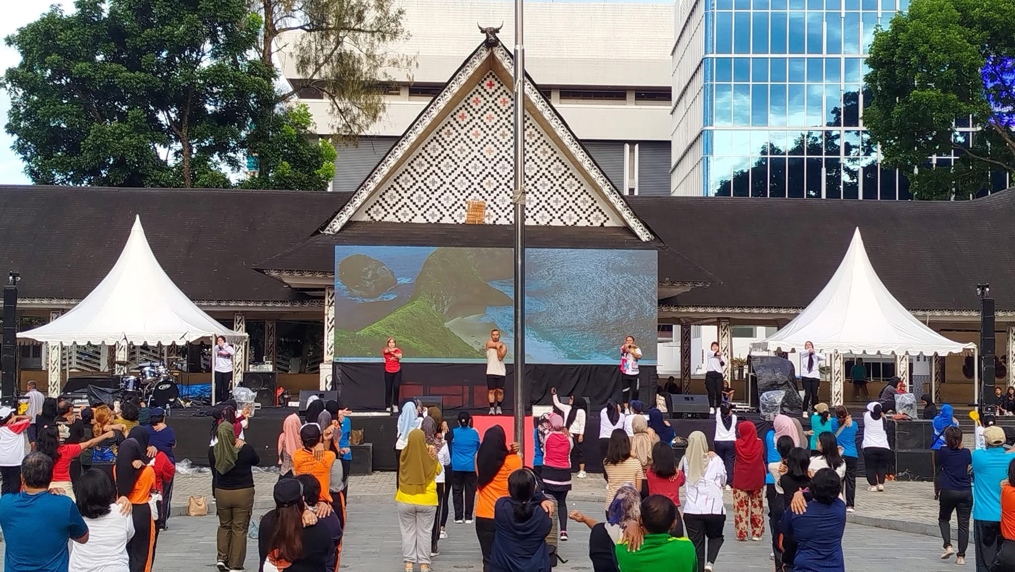 Tampak hadir, Kadis Pariwisata Muhammad Hammam Sholeh AP, Kabid Pemuda dan Olahraga Yusuf Armanto Gultom SSos, Sekjen KORMI Yowanda Rahmazam, jajaran induk organisasi Persatuan Olahraga Pernafasan Indonesia (PORPI) dan Asosiasi Instruktur Aerobik dan Fitness Indonesia (ASIAFI), serta para ASN.