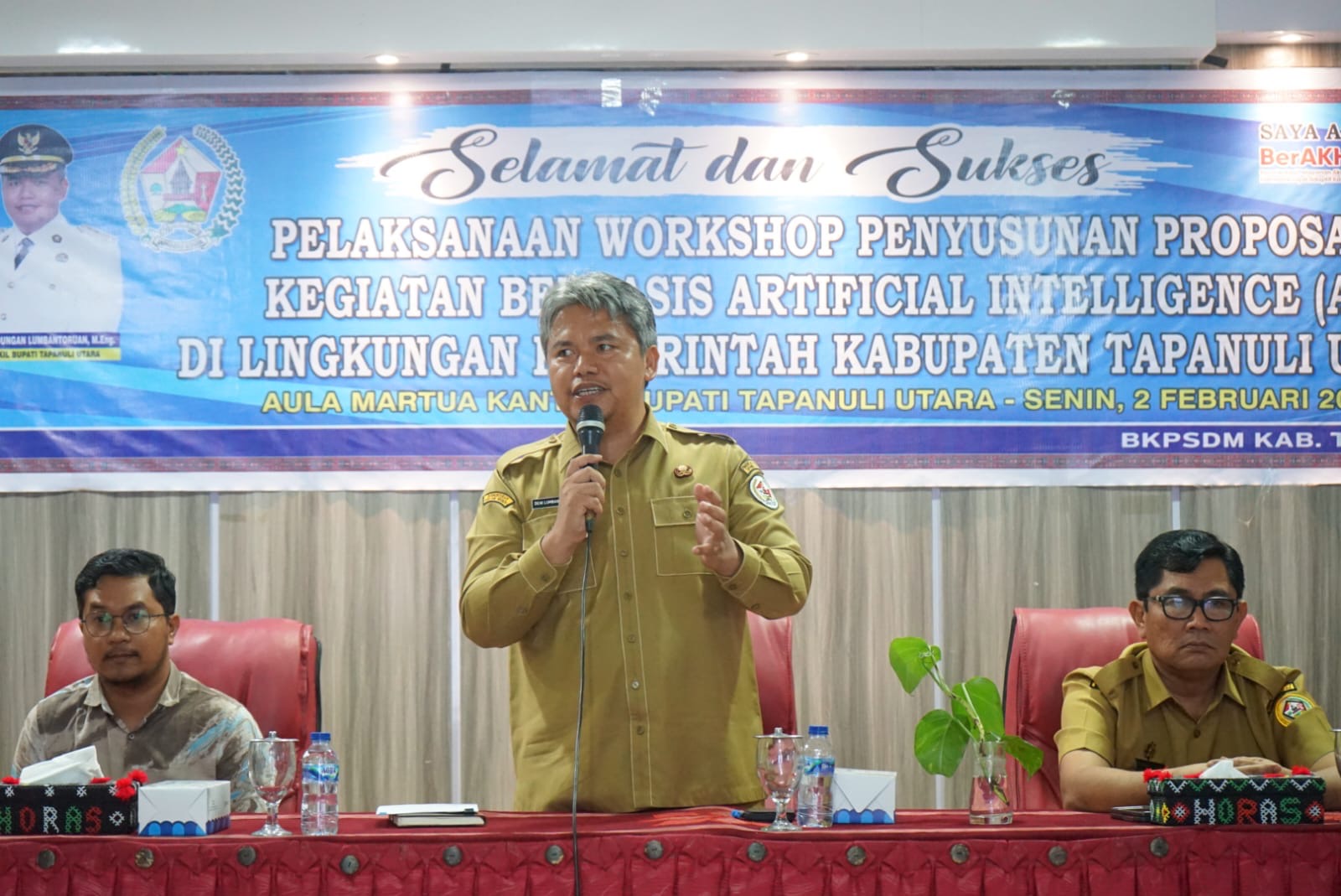 Pemerintah Kabupaten Tapanuli Utara terus mendorong percepatan transformasi digital di lingkungan birokrasi. Hal tersebut diwujudkan melalui Workshop Penyusunan Proposal Kegiatan Berbasis Artificial Intelligence (AI) atau Kecerdasan Buatan yang dibuka secara resmi oleh Wakil Bupati Tapanuli Utara Dr. Deni Parlindungan Lumbantoruan, M.Eng, didampingi Sekretaris Daerah Drs. Henry M. M. Sitompul, M.Si dan Pelaksana Tugas (Plt.) Kepala BKPSDM Jenri Simanjuntak, di Aula Martua Kantor Bupati Tapanuli Utara, Tarutung, Senin (2/2/2026).