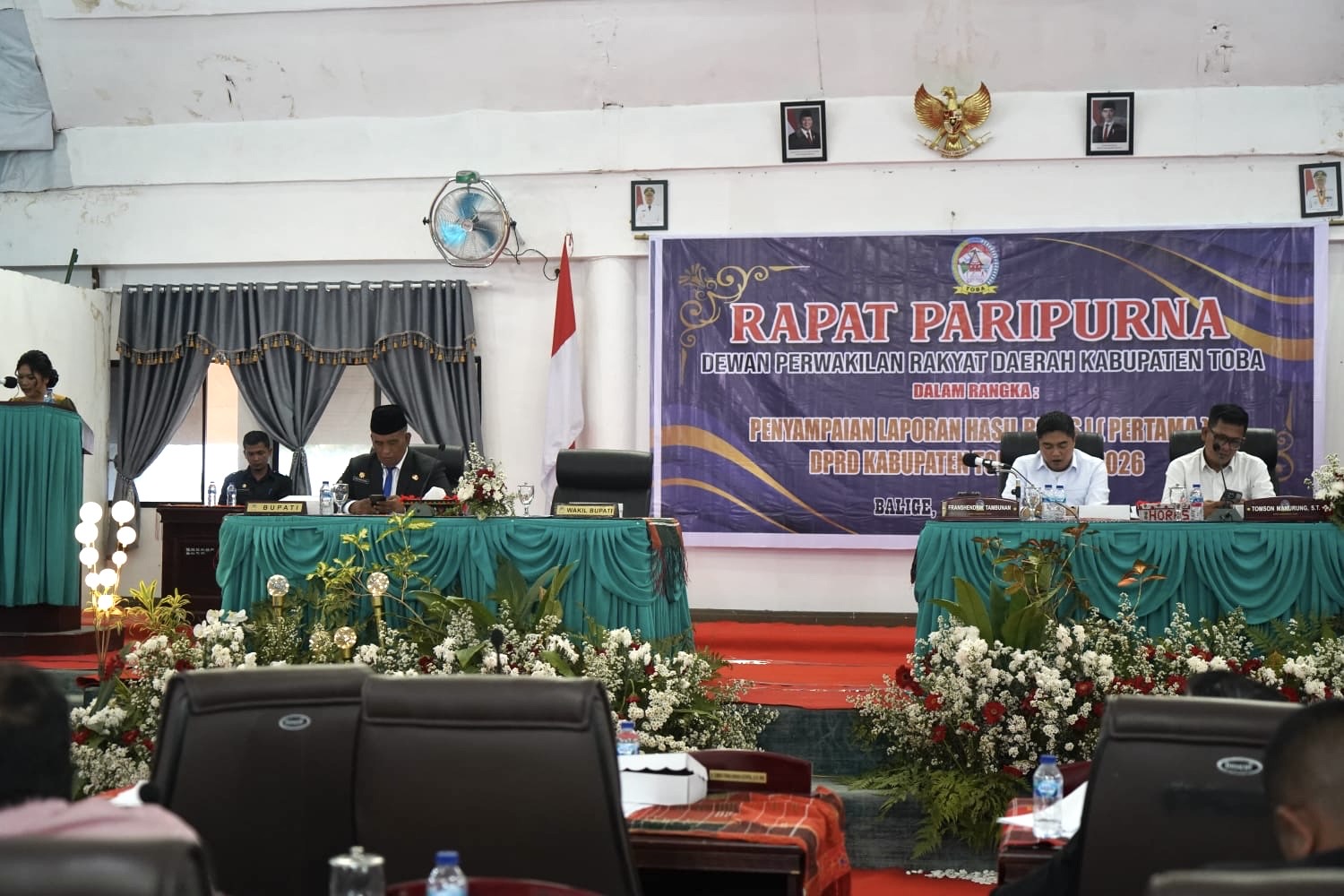DPRD Kabupaten Toba menggelar Rapat Paripurna dalam rangka penyampaian hasil reses I (penampungan aspirasi masyarakat) Tahun Anggaran 2026 di Gedung DPRD Toba, Senin (9/4/2026). Berikut sejumlah aspirasi masyarakat diantaranya meliputi bidang pertanian, pariwisata, infrastruktur,dan Koperasi Desa Merah Putih.