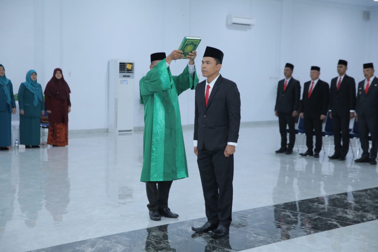 Wakil Bupati Asahan, Rianto, S.H., M.A.P., melantik Dr. Bukit Buchori Siagian, S.E., M.Si. sebagai Kepala Pelaksana Badan Penanggulangan Bencana Daerah (BPBD) Kabupaten Asahan dalam acara yang digelar di Aula Kantor Bupati Asahan, Selasa (19/08/2025).