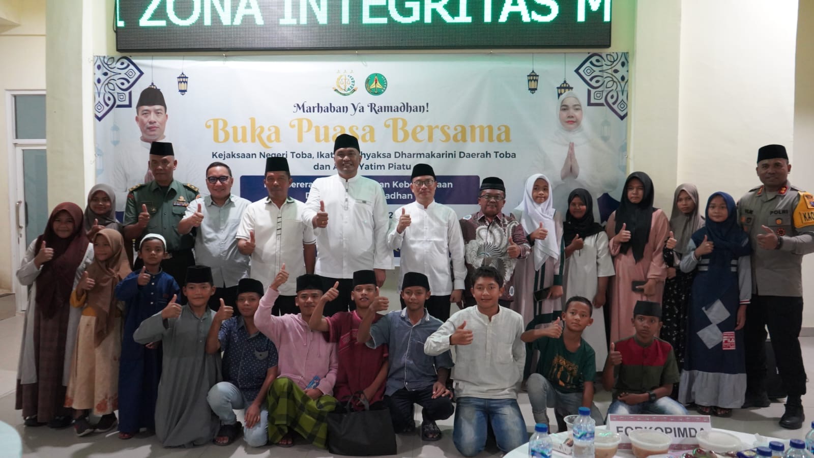 Bupati dan Wakil Bupati Toba bersama jajaran Forkopimda berbuka puasa bersama keluarga besar Kejaksaan Negeri Toba di pelataran kantor Kejari Toba pada Kamis (12/3/2026). Sebelum buka puasa bersama, Kejari Balige menyerahkan bantuan berupa sembako dan santunan kepada anak yatim.
