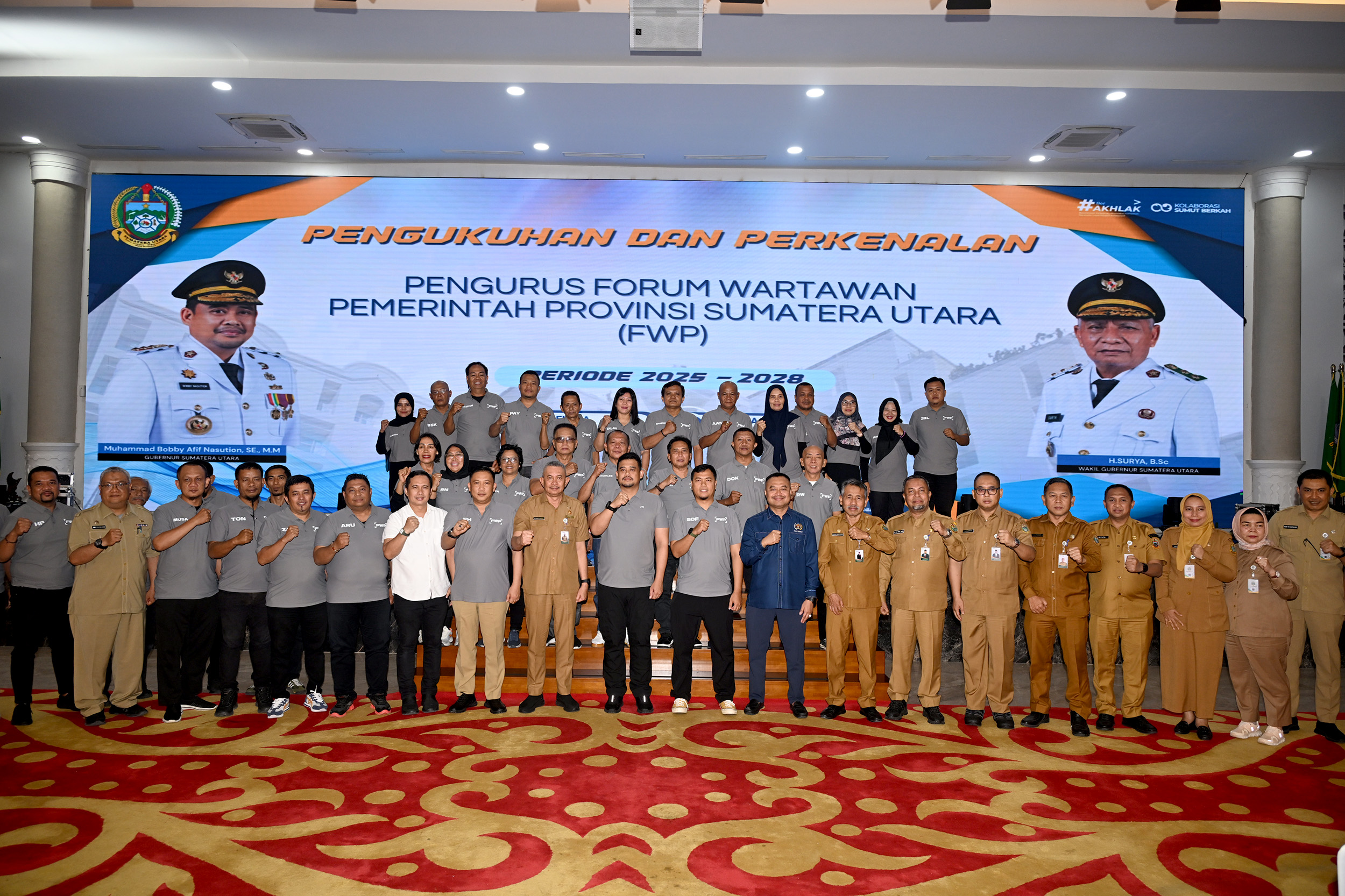 Gubernur Sumatera Utara (Sumut) Muhammad Bobby Afif Nasution mengajak para wartawan, khususnya pengurus dan anggota Forum Wartawan Pemprov (FWP) Sumut, untuk terus berkolaborasi mewujudkan Indonesia Emas. Hal itu disampaikannya, pada acara pengukuhan pengurus FWP Sumut di Aula Raja Inal Siregar, Kantor Gubernur, Jalan Diponegoro, Medan, Selasa (4/11/2025).
