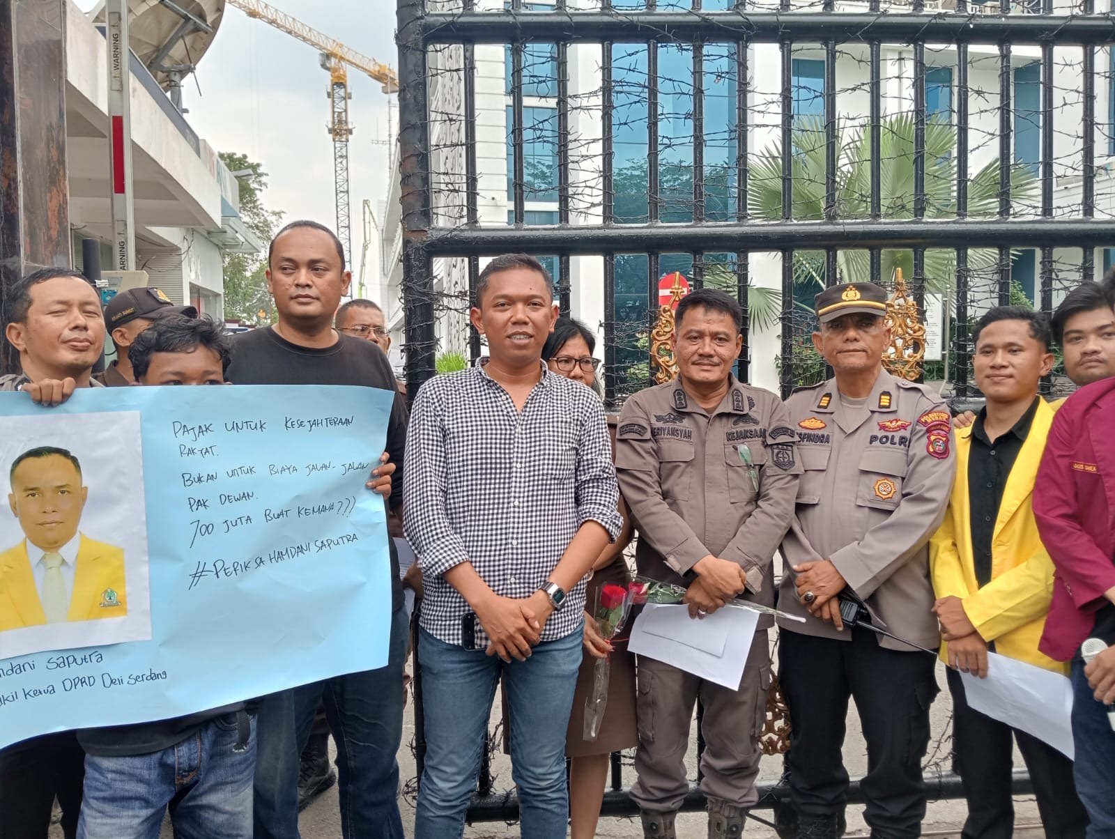 Aksi demonstrasi ini diikuti oleh ratusan massa lebih dan anggota masyarakat yang tergabung dalam FRAKSI. Mereka membawa spanduk dan poster bertuliskan tuntutan agar kasus SPPD Wakil Ketua DPRD Deli Serdang Hamdani Sahputra diusut tuntas.