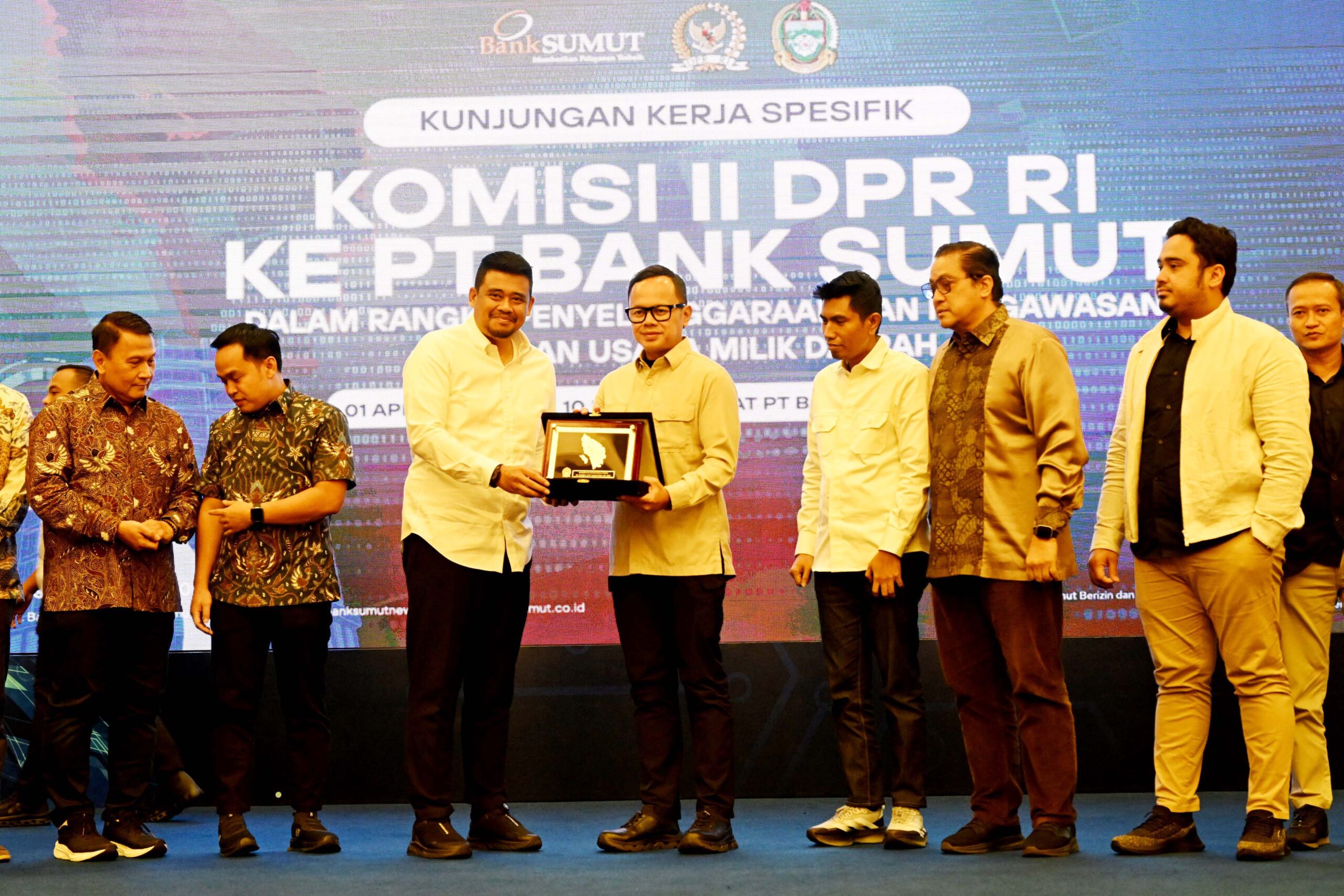 Hal tersebut disampaikan Bobby Nasution dalam pertemuan Kunjungan Kerja Komisi II DPR RI dalam rangka penyelenggaraan dan pengawasan Badan Usaha Milik Daerah (BUMD), di Kantor Pusat PT Bank Sumut, Jalan Imam Bonjol, Medan, Rabu (1/4/2026). Hadir dalam kegiatan tersebut Wakil Menteri Dalam Negeri (Wamendagri) Bima Arya Sugiarto, para bupati/walikota se-Sumut, serta sejumlah pejabat lainnya.