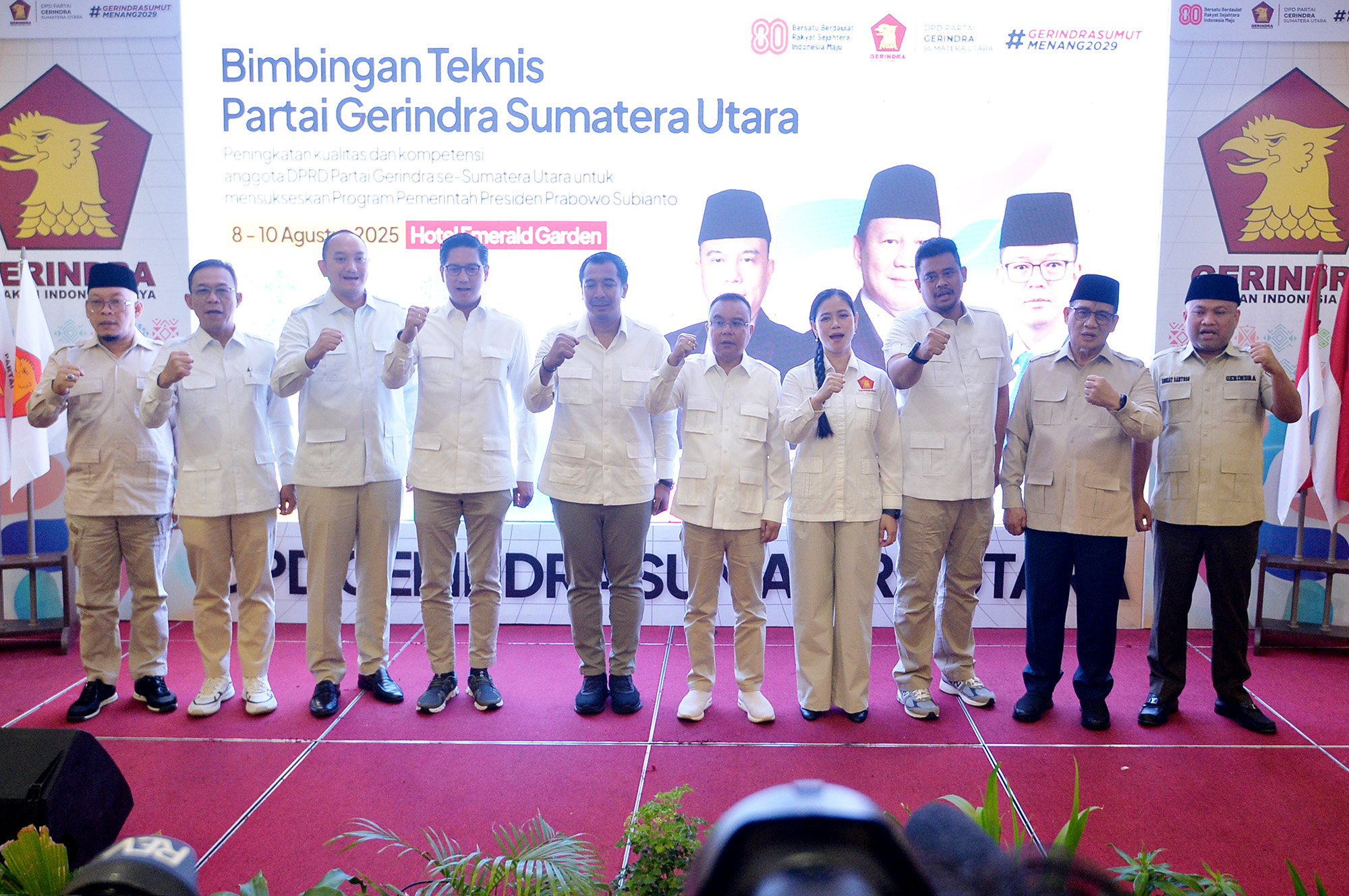 “Partai Gerindra telah memberikan kepercayaan kepada saya yang telah dipilih menjadi Gubernur Sumatera Utara. Kepercayaan yang diberikan ini akan dibuktikan melalui kerja yang baik dan menjadi kader yang baik,” kata Bobby Nasution, saat menghadiri Bimbingan Teknis (Bimtek) Partai Gerindra Sumut, yang diselenggarakan di Hotel Emerald Garden Medan, Sabtu (9/8/2025).