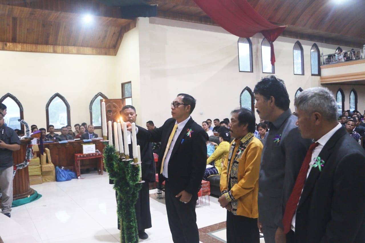 Hadiri Natal Oikumene Kecamatan Pangaribuan, Bupati Ajak Masyarakat Perkuat Kepedulian dan Kebersamaan