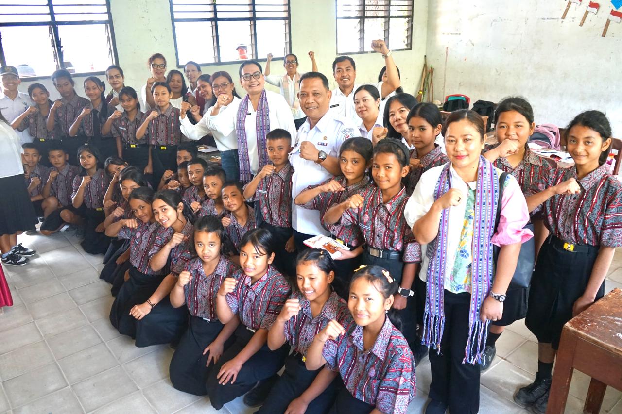 Ketua TP PKK Kabupaten Tapanuli Utara Ny. Neny Angelina JTP Hutabarat Br. Purba mengunjungi SMP Negeri 2 Pagaran dalam rangka memperingati Hari Anak Nasional, Selasa (23/07/2025).