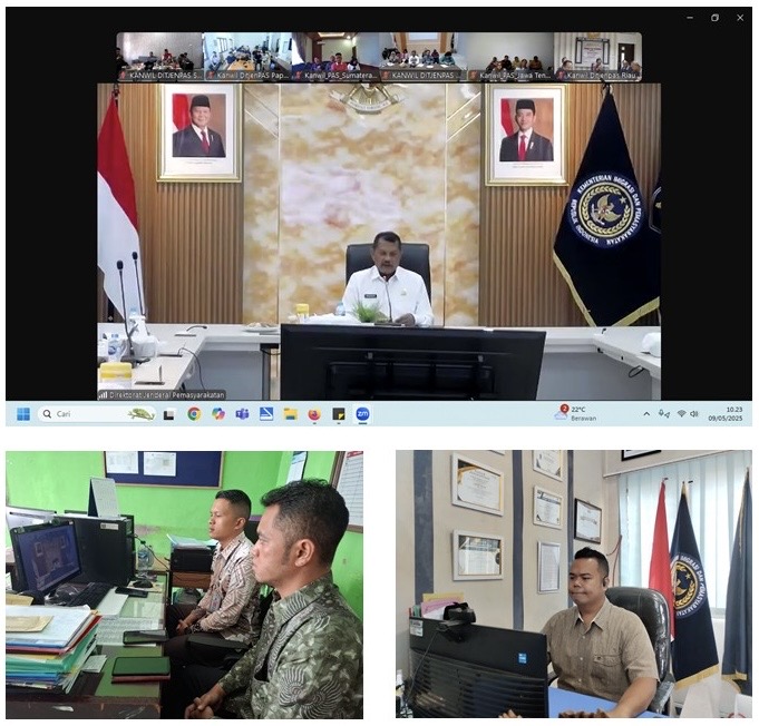 Rumah Tahanan Negara Kelas IIB Tarutung ikuti kegiatan arahan langsung dari Direktur Jenderal Pemasyarakatan, Mashudi. Kegiatan tersebut di hadiri Kepala Rutan Kelas Tarutung, Evan Yudha Putra Sembiring, Kasubsi Pelayanan Tahanan, Jonias B. Pakpahan, Kasubsi Pengelolaan, Mian H.R. Simarmata, Kepala Kesatuan Pengamanan Rutan, James Bond Naibaho dan staf secara virtual melalui aplikasi zoom meeting, Jumat (9/5/2025).