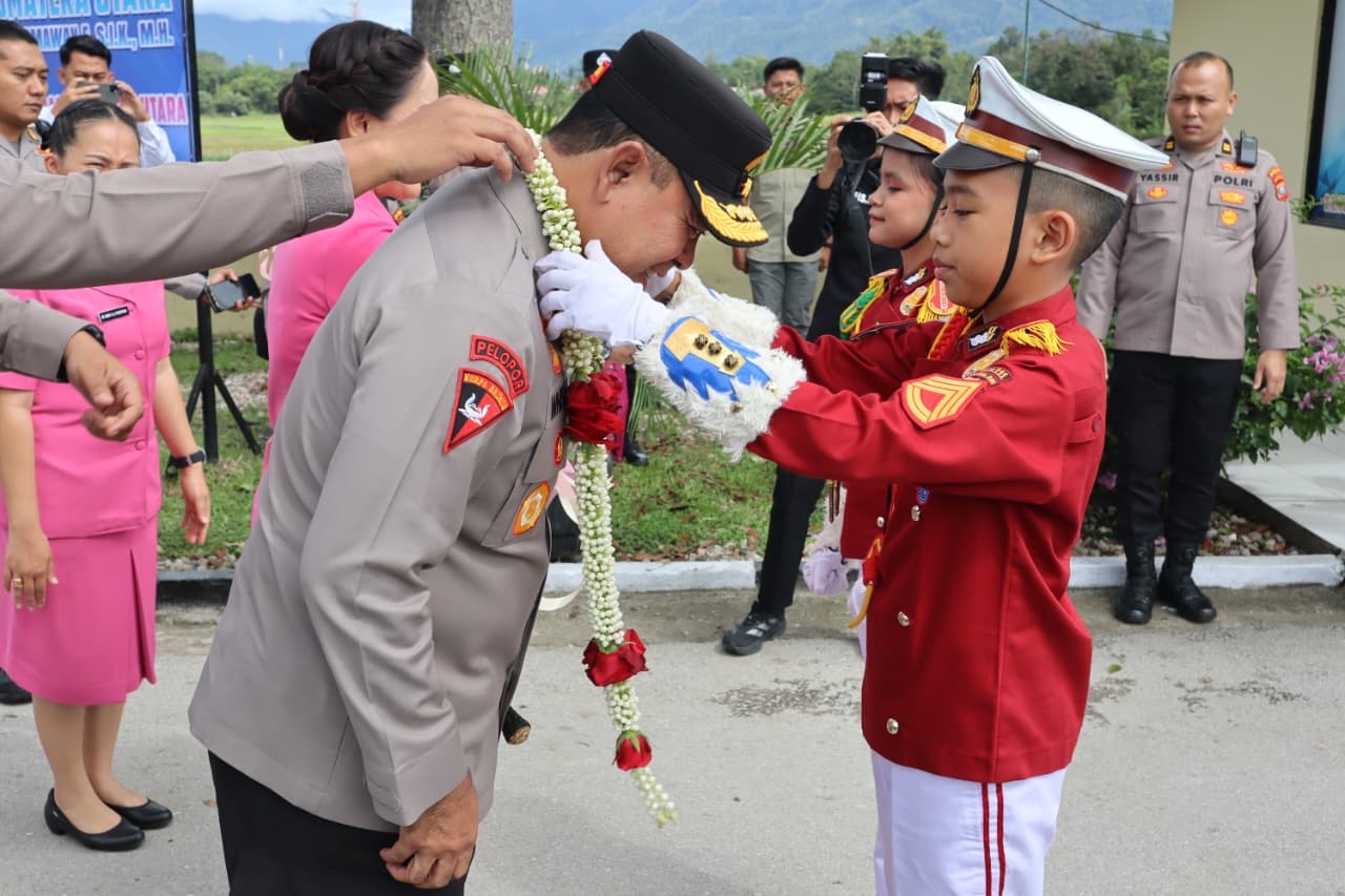 Kedatangan Kapolda Sumut dan bersama Ibu Ketua PD Bhayangkari Sumatera Utara di sambut dengan tarian tor-tor dari siswa-siswi sekolah Yayasan Bonapasogit Sejahtera ( YBS ) saat kunjungan kerja ke Polres Toba, Kamis (20/11/2025).