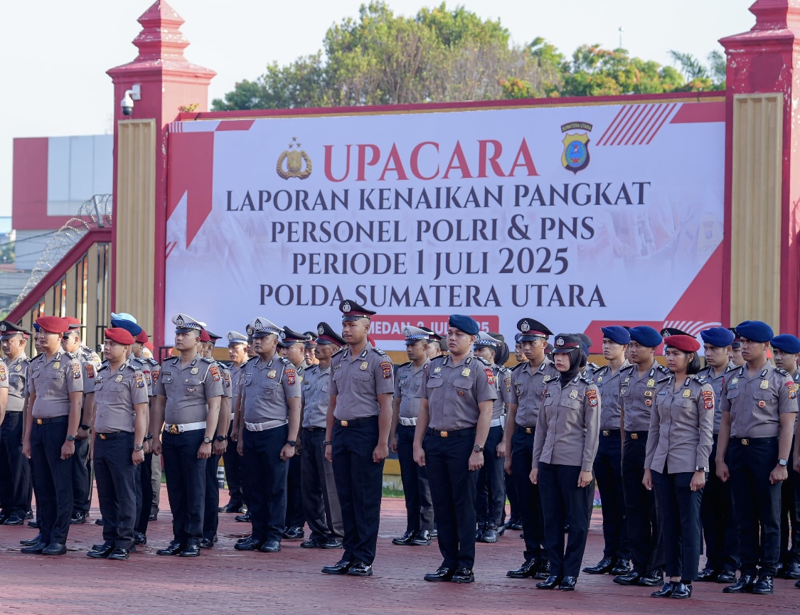 Sebanyak 1.430 personel Polda Sumut secara resmi naik pangkat satu tingkat lebih tinggi, yang terdiri dari 113 Perwira, 1.271 Bintara, 27 Tamtama, dan 19 PNS Polri. Untuk personel yang berdinas di Mapolda, upacara digelar secara langsung di Lapangan KS Tubun. Sementara itu, personel di jajaran Polres melaksanakan upacara serupa secara serentak di Polres masing-masing.