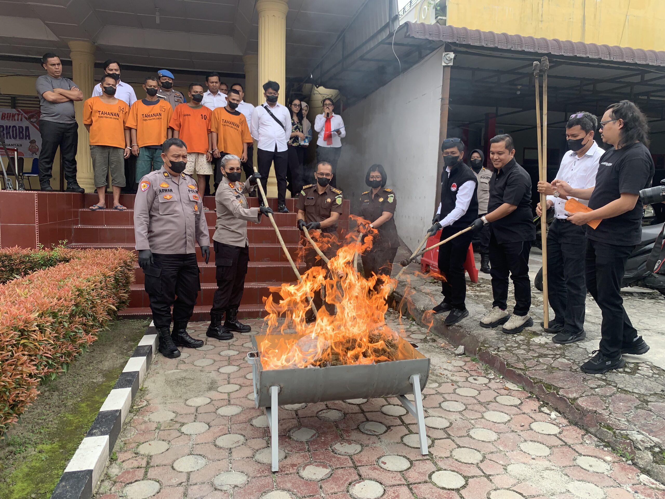 Pemusnahan barang bukti narkotika jenis ganja dilakukan secara terbuka dan disaksikan oleh unsur terkait, sebagai bentuk akuntabilitas dan keterbukaan Polres Pematangsiantar kepada publik.