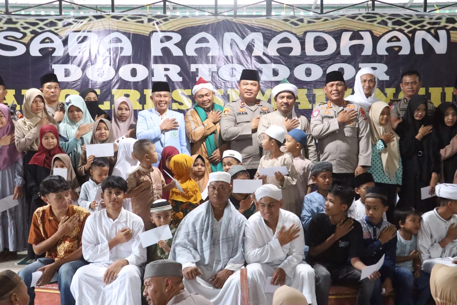 Menyentuh hati dan penuh berkah! Kapolres Simalungun AKBP Marganda Aritonang, S.I.K., S.H., M.M., bersama puluhan pejabat Polres Simalungun menggelar program Sapa Ramadan Door to Door dengan rangkaian kegiatan lengkap: santunan santri, bagi sembako, buka puasa bersama, hingga shalat Maghrib berjamaah di Pondok Pesulukan Serambi Babussalam, Senin (23/2/2026) sore.