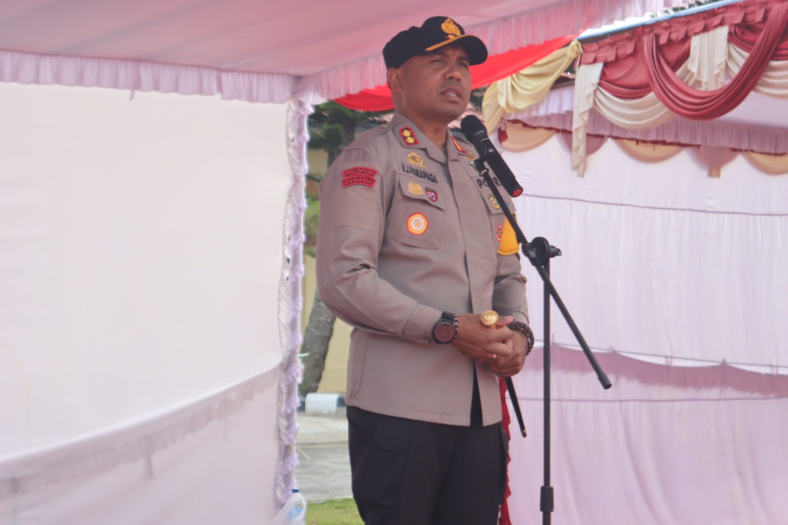 AKBP V.J Parapaga memberikan gambaran kepada seluruh personil Polres Toba lebih meningkatkan pelayanan terhadap masyarakat disemua aspek kegiatan masyarakat yaitu pada kegiatan pesta adat, jam anak sekolah, pekan yang ada disetiap kecamatan dan kegaitan agama yaitu saat beribadah.