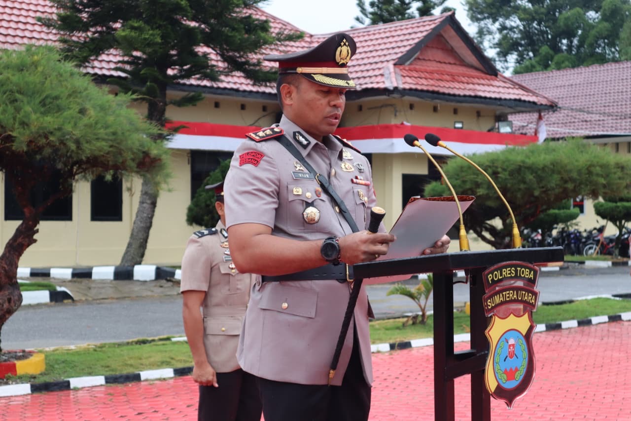 Upacara berlangsung khidmat dan diikuti oleh seluruh Pejabat Utama (PJU) Polres Toba, para Perwira serta Bintara Polres Toba
