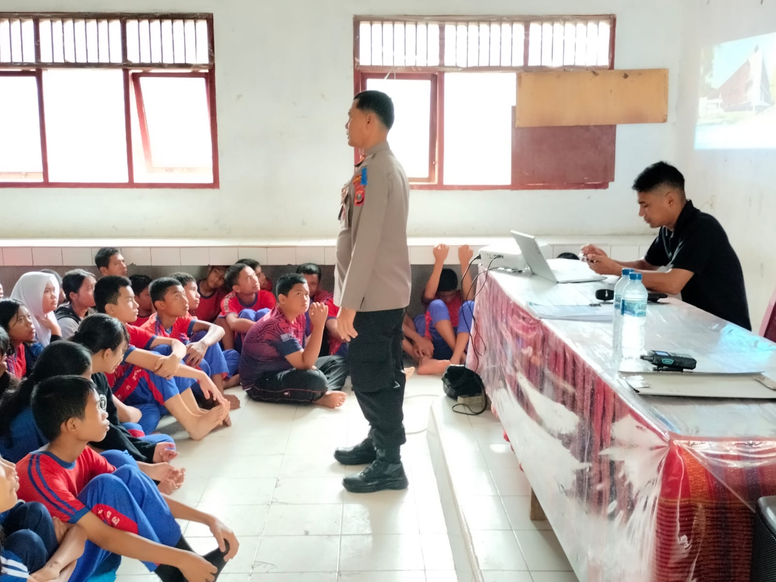 Kapolsek Balige AKP Libertius Siahaan, SH, bersama Bhabinkamtibmas Bripka Surya Hamzah melaksanakan sosialisasi penerimaan murid baru SMA Kemala Taruna Bhayangkara tahun ajaran 2026/2027.