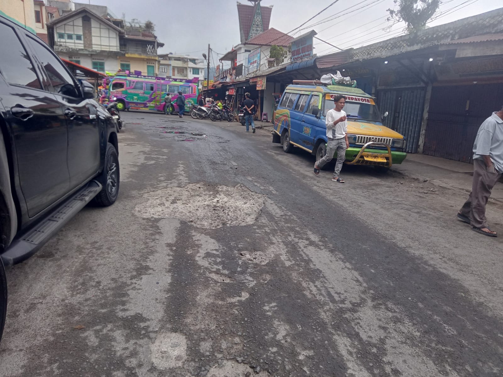 badan jalan penuh berlubang dan