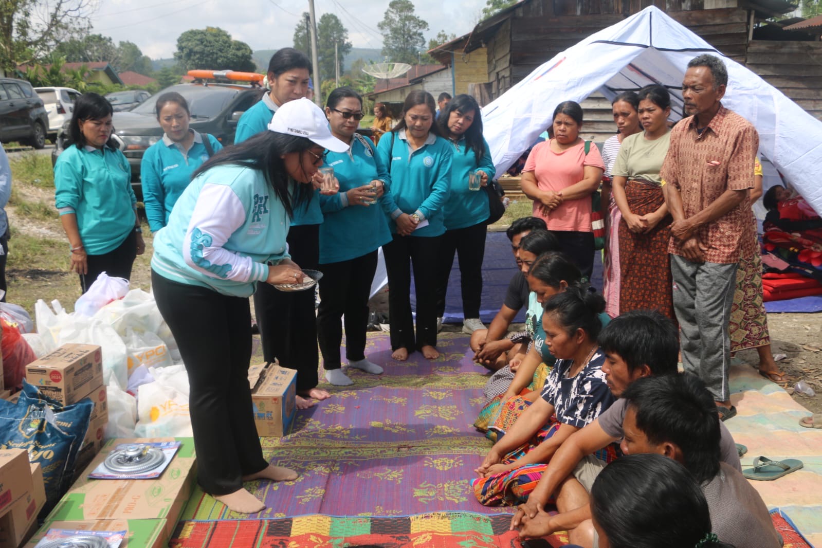 Dalam kunjungan tersebut, Ketua TP PKK Tapanuli Utara bersama rombongan menyampaikan ungkapan empati dan penghiburan kepada keluarga korban dengan memberikan boras sipir ni tondi dan aek sitiotio sebagai simbol doa agar para korban diberikan kekuatan, ketegaran, serta mampu bangkit kembali menghadapi musibah.