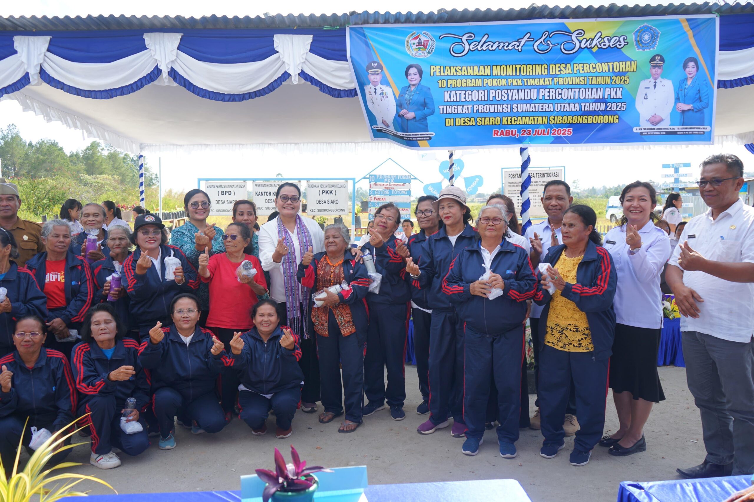 Ketua Tim Penggerak PKK Kabupaten Tapanuli Utara, Ny. Neny Angelina JTP Hutabarat Br. Purba, memimpin langsung kegiatan monitoring Desa Percontohan 10 Program Pokok PKK Tingkat Provinsi Sumatera Utara Tahun 2025 kategori Posyandu yang dilaksanakan di Desa Siaro, Kecamatan Siborongborong, Rabu (23/07/2025).