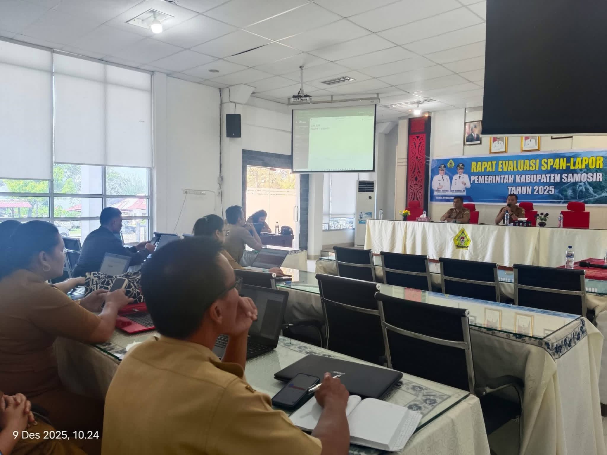 Pemerintah Kabupaten Samosir melalui Dinas Komunikasi dan Informatika (Diskominfo) menggelar Rapat Evaluasi Sistem Pengelolaan Pengaduan Pelayanan Publik Nasional (SP4N-LAPOR) sebagai bentuk komitmen dalam mewujudkan pelayanan publik yang transparan, responsif dan akuntabel.